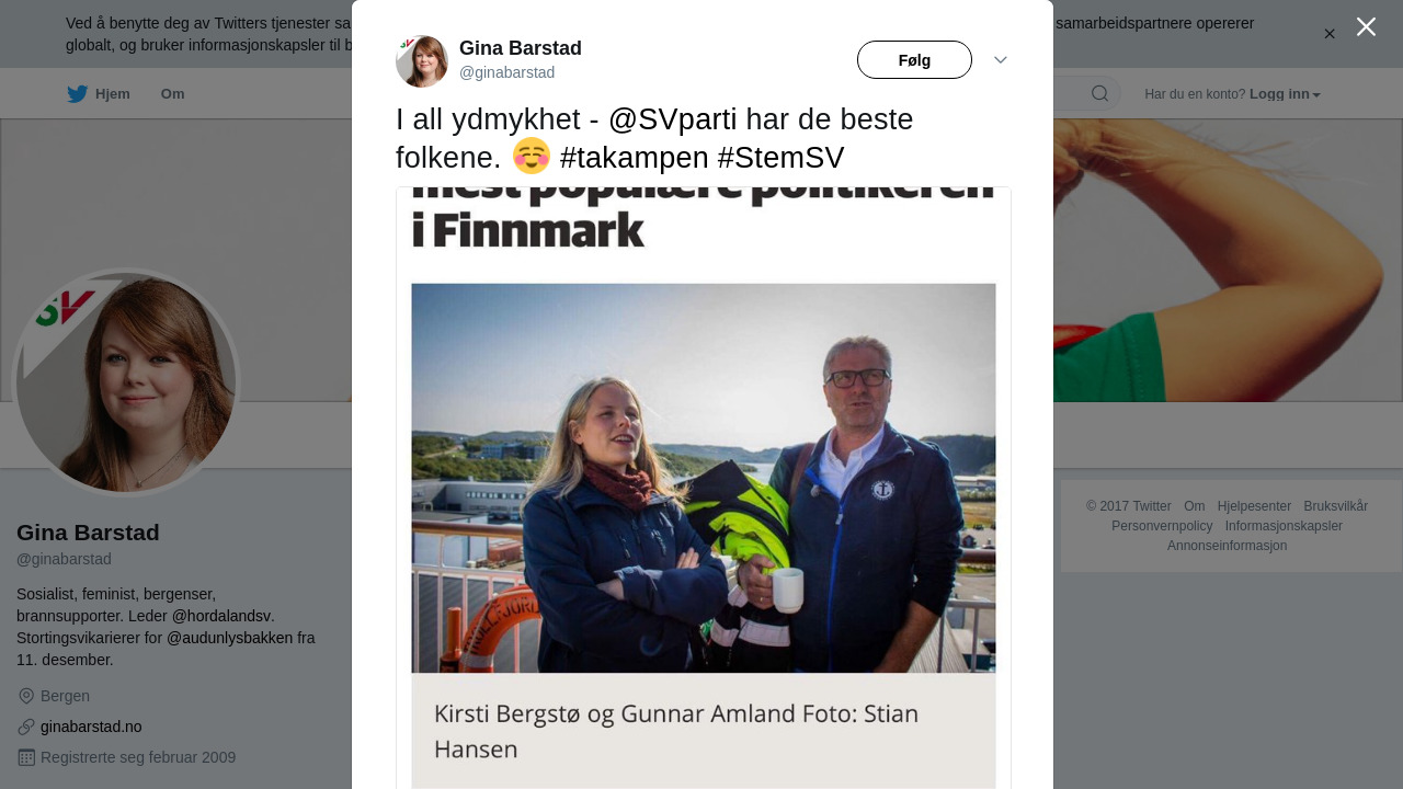 RT @ginabarstad: I all ydmykhet - @SVparti har de beste folkene. ☺️ #takampen #StemSV https://t.co/FHhkLsaWf1