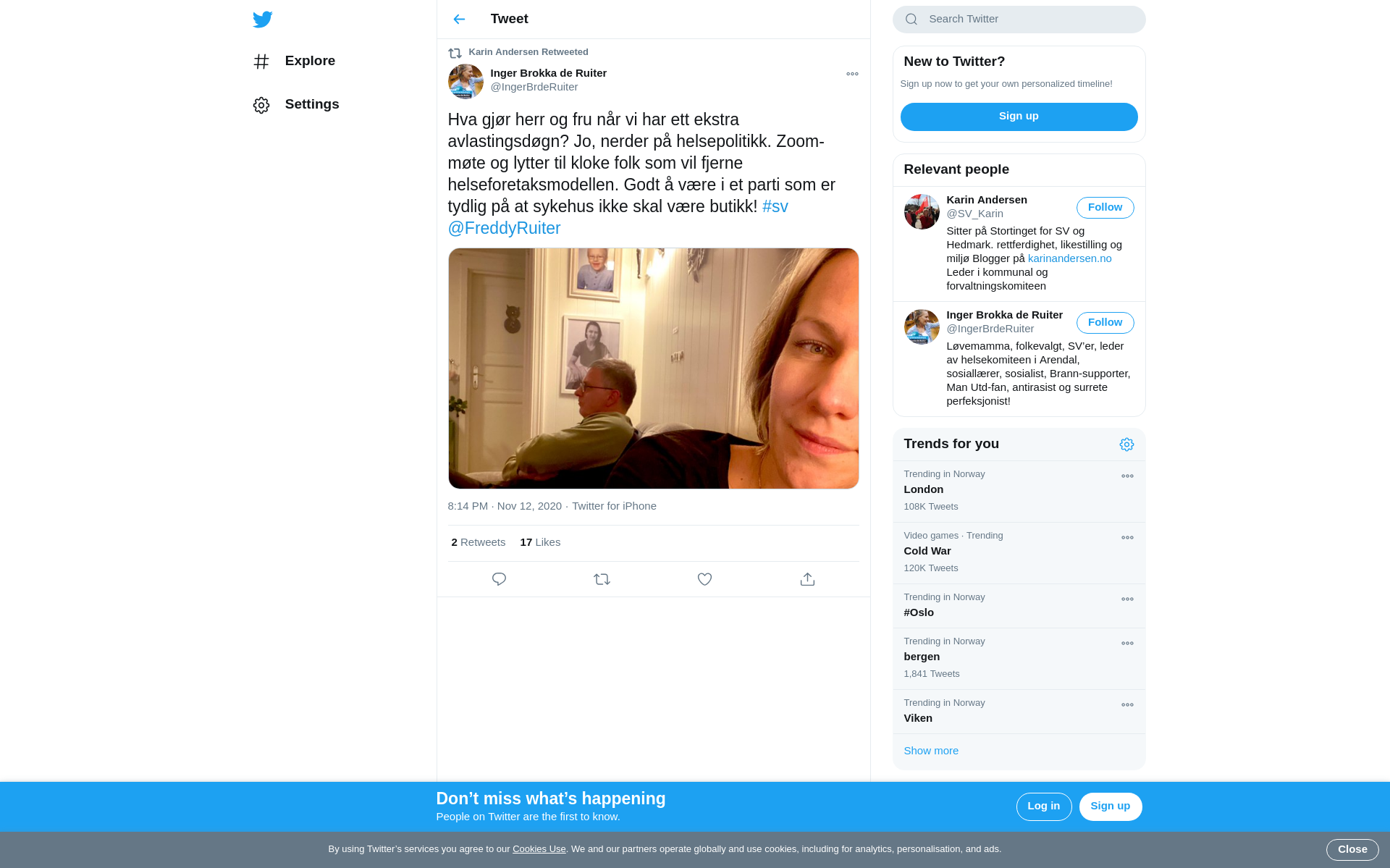RT @IngerBrdeRuiter: Hva gjør herr og fru når vi har ett ekstra avlastingsdøgn? Jo, nerder på helsepolitikk. Zoom-møte og lytter til kloke folk som vil fjerne helseforetaksmodellen. Godt å være i et parti som er tydlig på at sykehus ikke skal være butikk! #sv @FreddyRuiter https://t.co/plyM7Ykl3S