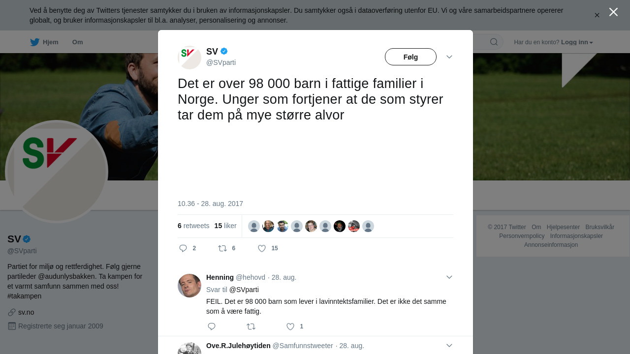 Det er over 98 000 barn i fattige familier i Norge. Unger som fortjener at de som styrer tar dem på mye større alvor https://t.co/mTl9n2SPN8