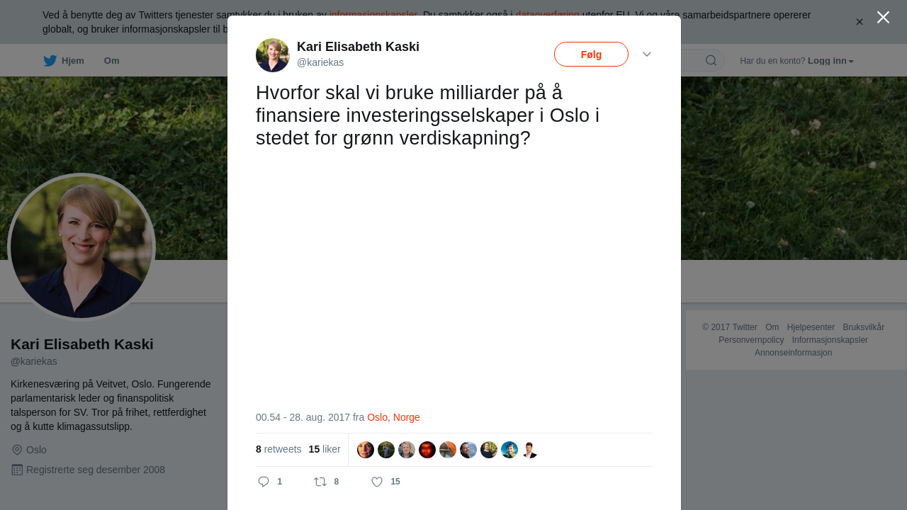 RT @kariekas: Hvorfor skal vi bruke milliarder på å finansiere investeringsselskaper i Oslo i stedet for grønn verdiskapning? https://t.co/HfvFstp055