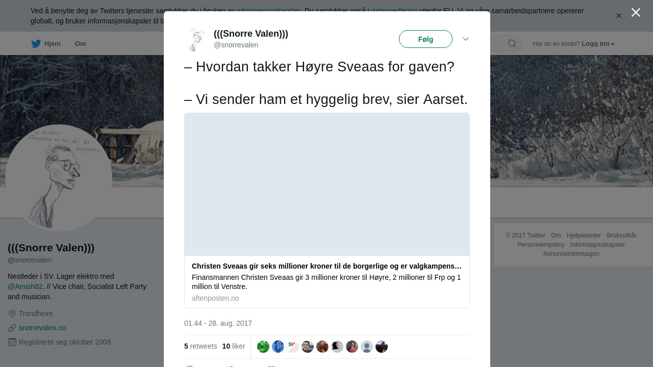RT @snorrevalen: – Hvordan takker Høyre Sveaas for gaven? – Vi sender ham et hyggelig brev, sier Aarset. https://t.co/Wh2MJL2fg2