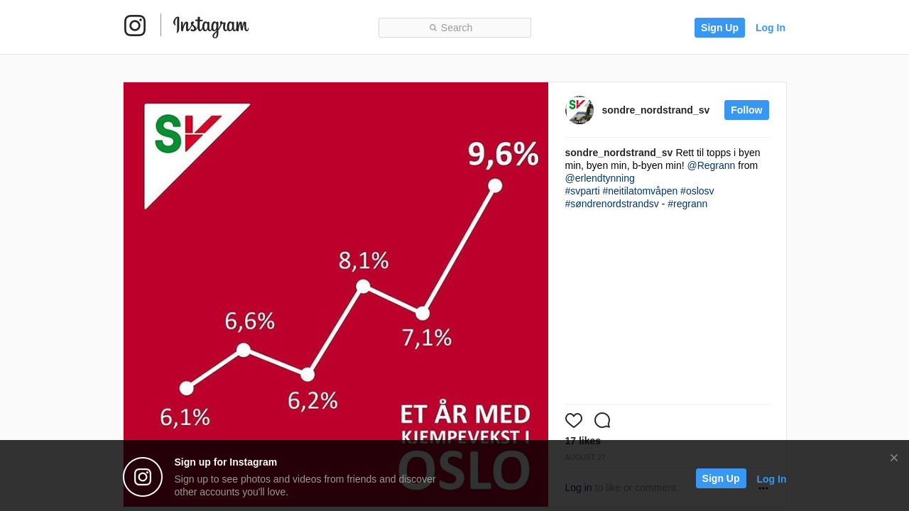 Rett til topps i byen min, byen min, b-byen min! @Regrann from @erlendtynning #svparti #neitilatomvåpen #oslosv #søndrenordstrandsv - #regrann