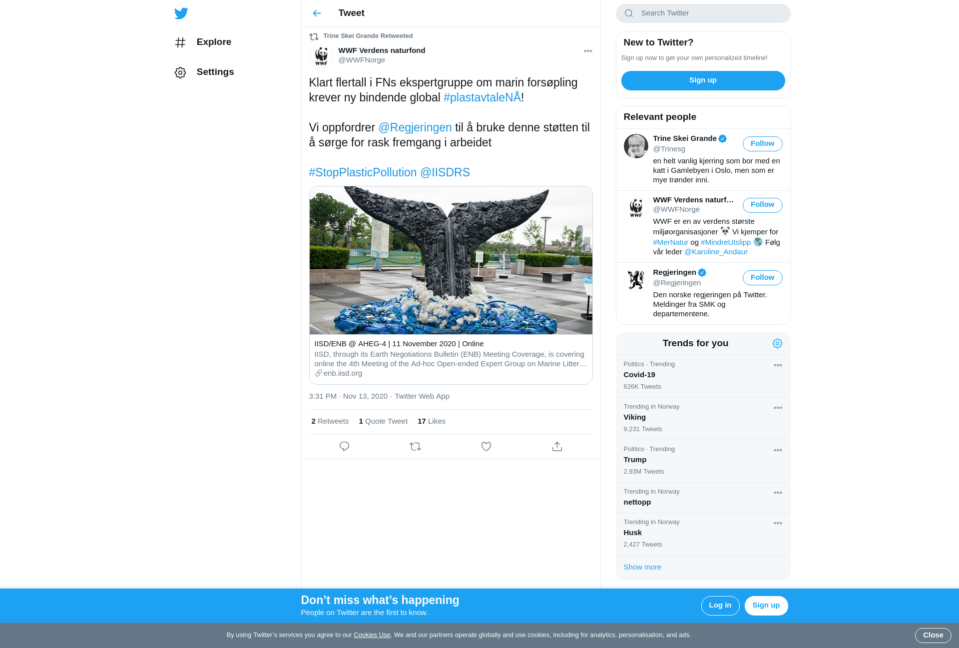 RT @WWFNorge: Klart flertall i FNs ekspertgruppe om marin forsøpling krever ny bindende global #plastavtaleNÅ! Vi oppfordrer @Regjeringen…