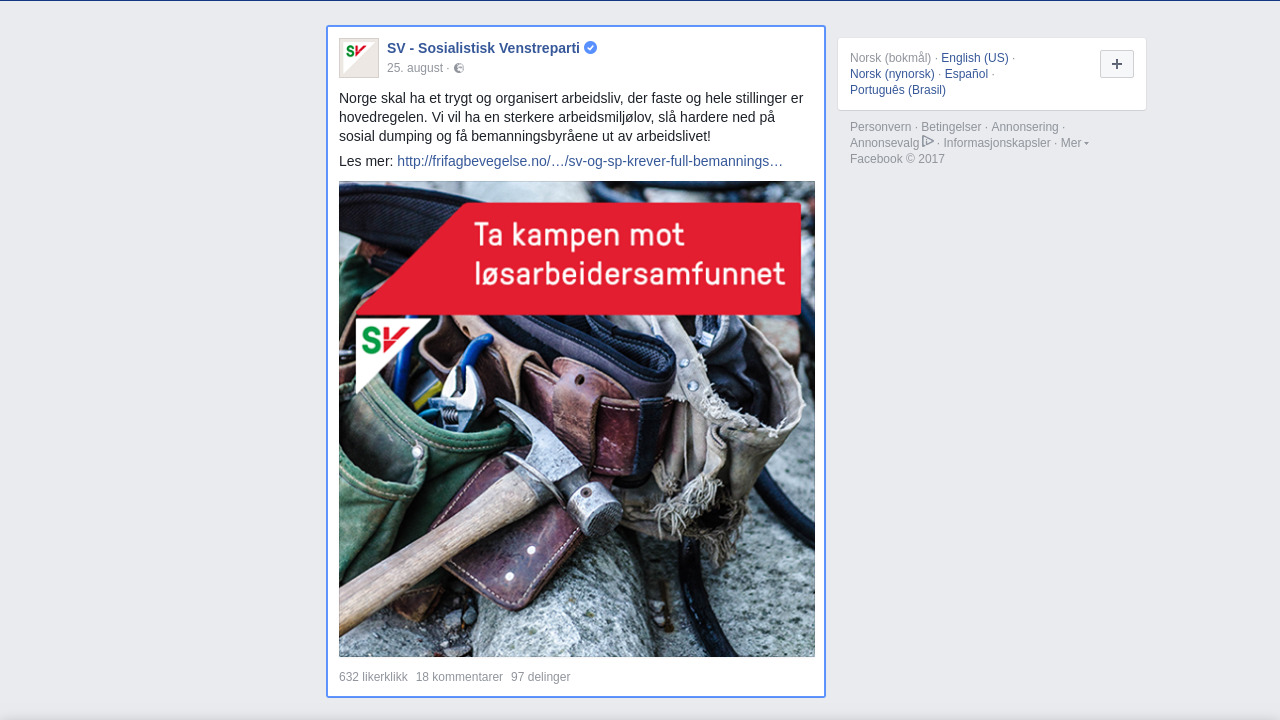 Les mer: http://frifagbevegelse.no/nyheter/sv-og-sp-krever-full-bemanningsstans-6.158.483423.42a6a18fd8