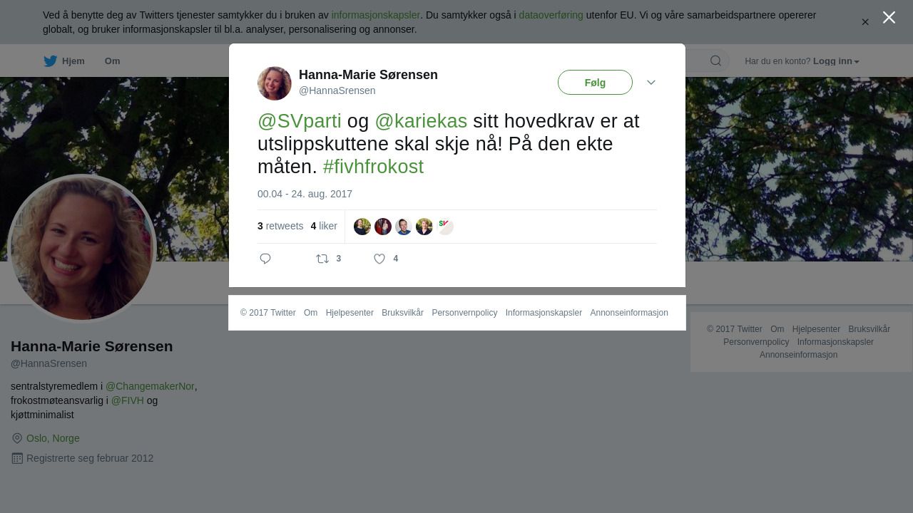 RT @HannaSrensen: @SVparti og @kariekas sitt hovedkrav er at utslippskuttene skal skje nå! På den ekte måten. #fivhfrokost