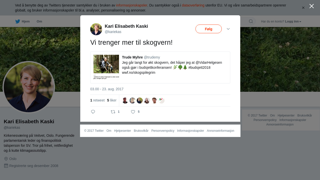 “Jeg går langt for økt skogvern, det håper jeg at @VidarHelgesen også gjør i budsjettkonferansen! 🌿🌳🌲 #budsjett2018 https://t.co/6VJxyDA43j”