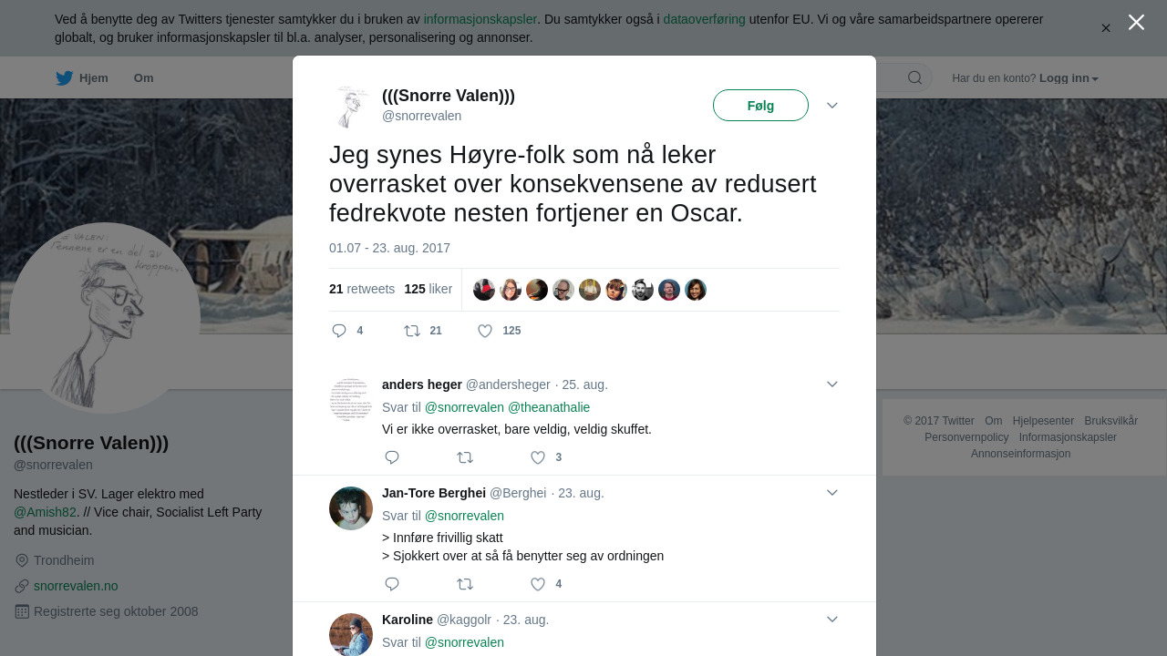 RT @snorrevalen: Jeg synes Høyre-folk som nå leker overrasket over konsekvensene av redusert fedrekvote nesten fortjener en Oscar.