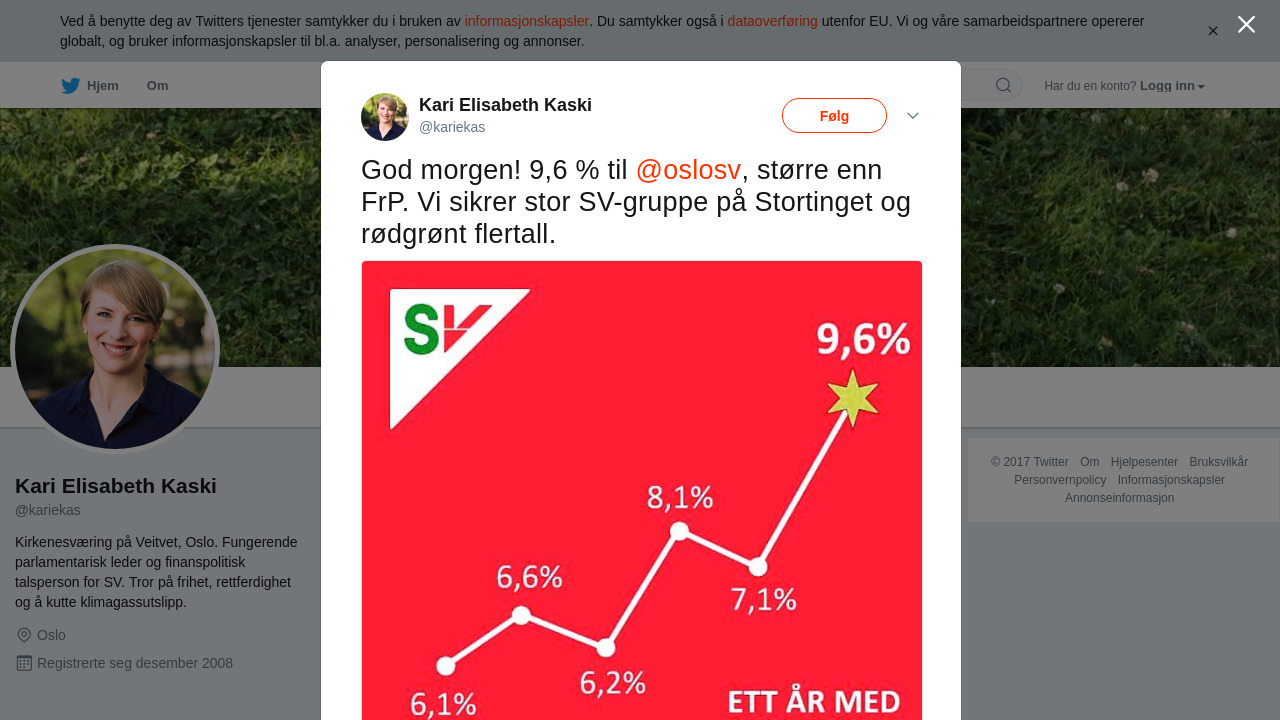 RT @kariekas: God morgen! 9,6 % til @oslosv, større enn FrP. Vi sikrer stor SV-gruppe på Stortinget og rødgrønt flertall. https://t.co/esiyycge8T
