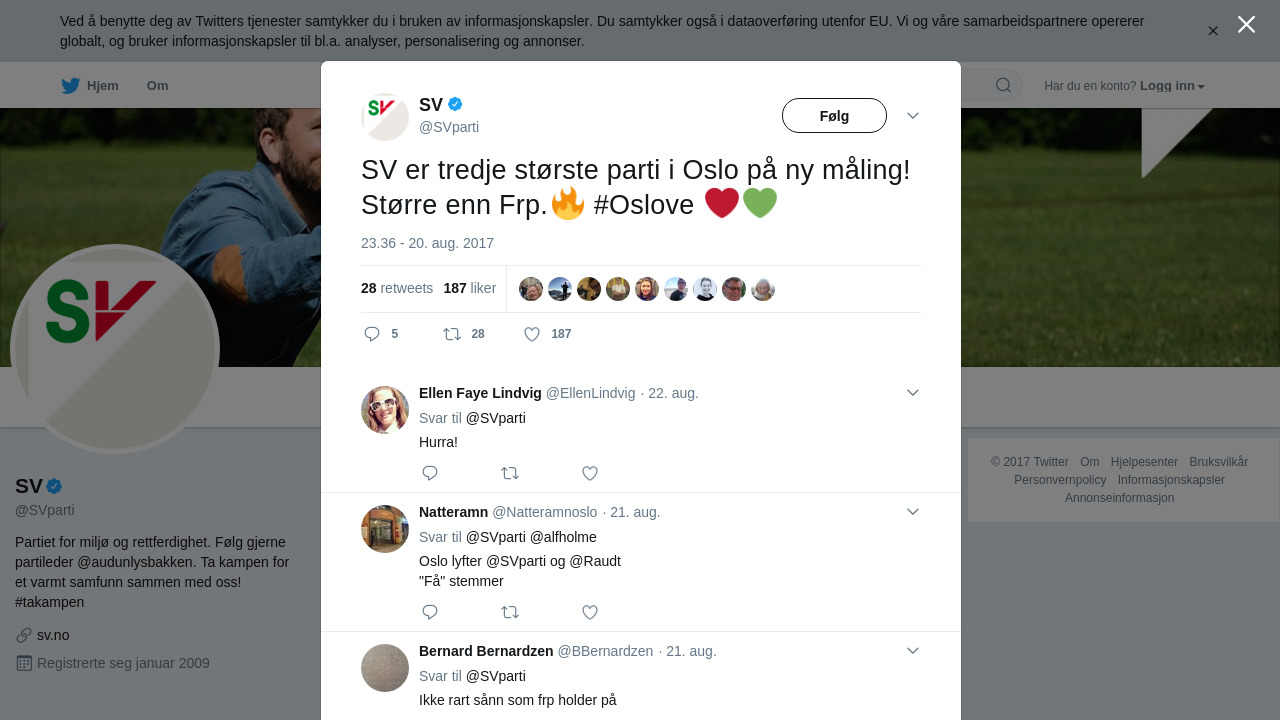 SV er tredje største parti i Oslo på ny måling! Større enn Frp.🔥 #Oslove ❤💚