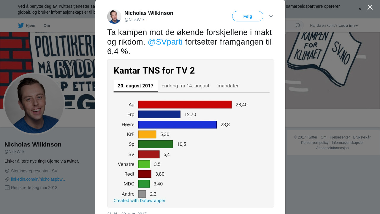 RT @NickWilki: Ta kampen mot de økende forskjellene i makt og rikdom. @SVparti fortsetter framgangen til 6,4 %. https://t.co/F80qrCpxjA