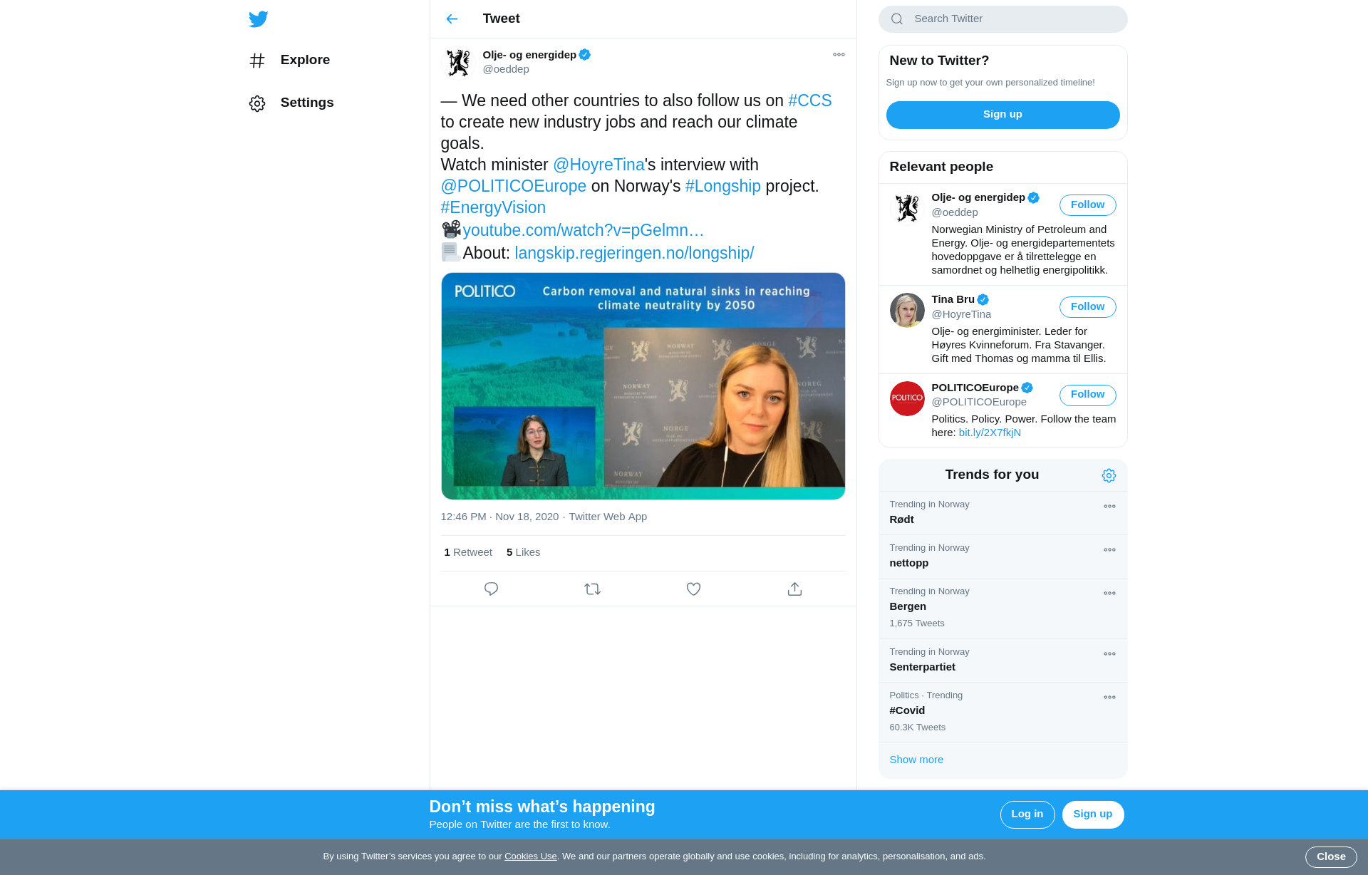 Watch minister @HoyreTina's interview with @POLITICOEurope on Norway's #Longship project.