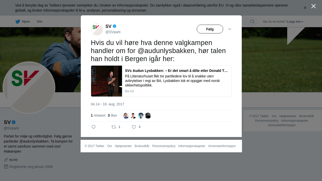 Hvis du vil høre hva denne valgkampen handler om for @audunlysbakken, hør talen han holdt i Bergen igår her: https://t.co/qJtDnnXWyF