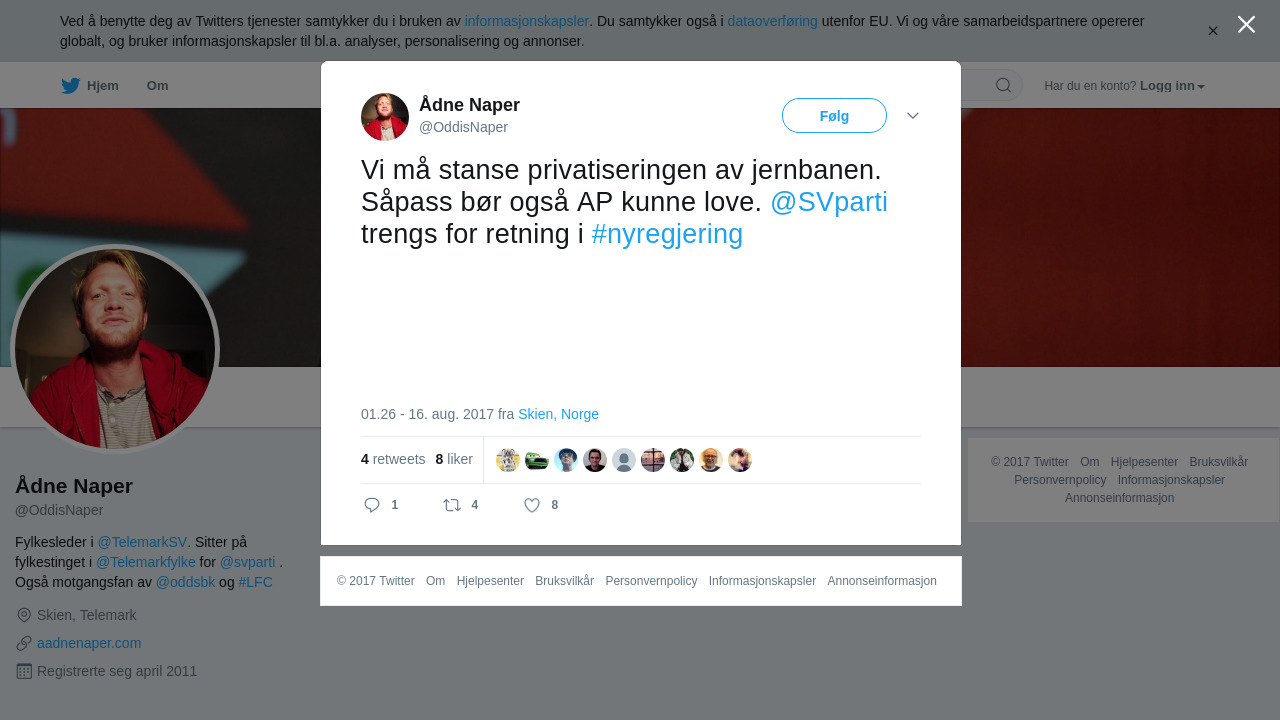 RT @OddisNaper: Vi må stanse privatiseringen av jernbanen. Såpass bør også AP kunne love. @SVparti trengs for retning i #nyregjering https://t.co/HLVLGNmMnw