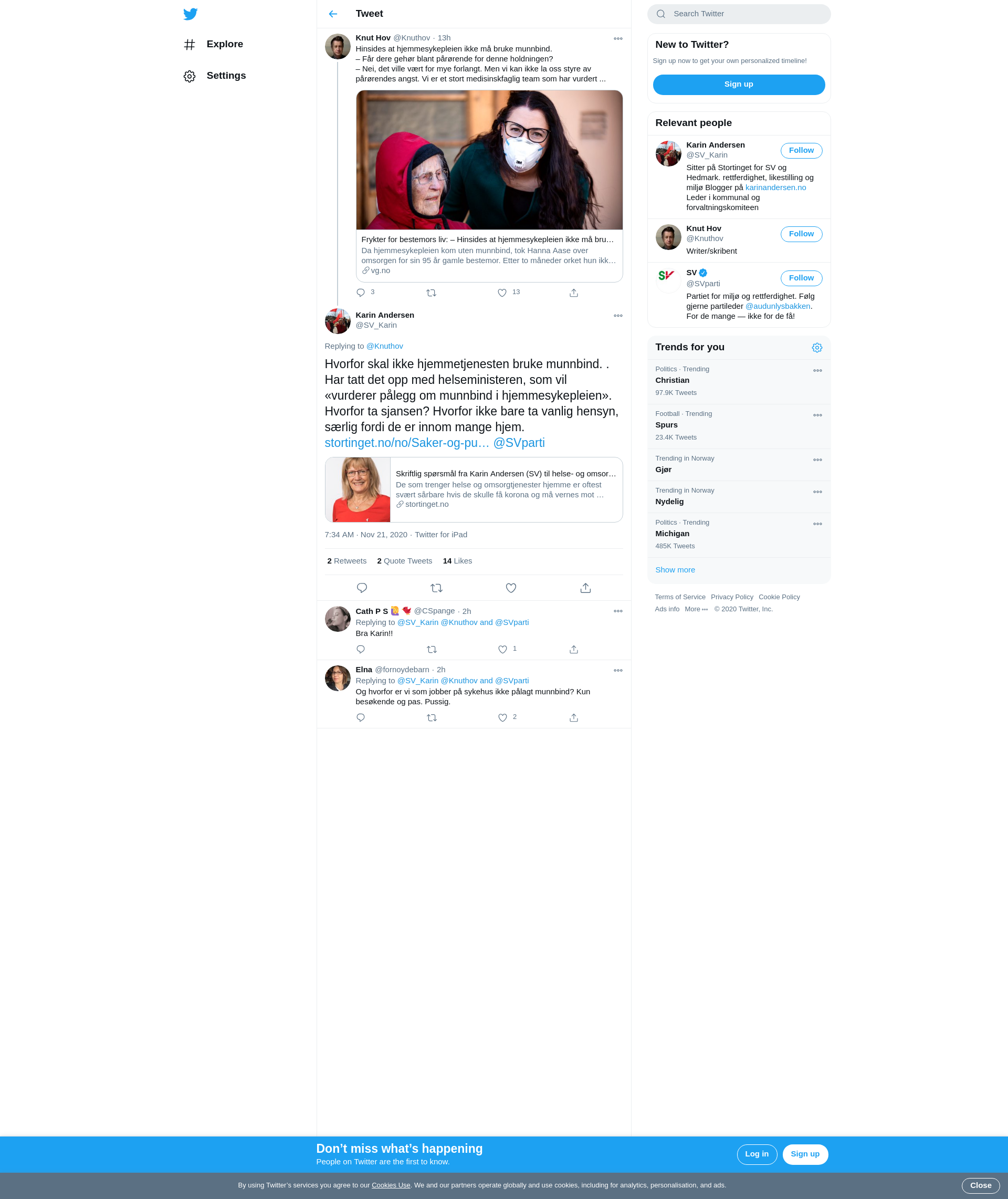 @Knuthov Hvorfor skal ikke hjemmetjenesten bruke munnbind. . Har tatt det opp med helseministeren, som vil «vurderer pålegg om munnbind i hjemmesykepleien». Hvorfor ta sjansen? Hvorfor ikke bare ta vanlig hensyn, særlig fordi de er innom mange hjem. https://t.co/SzJ0Efo51l @SVparti