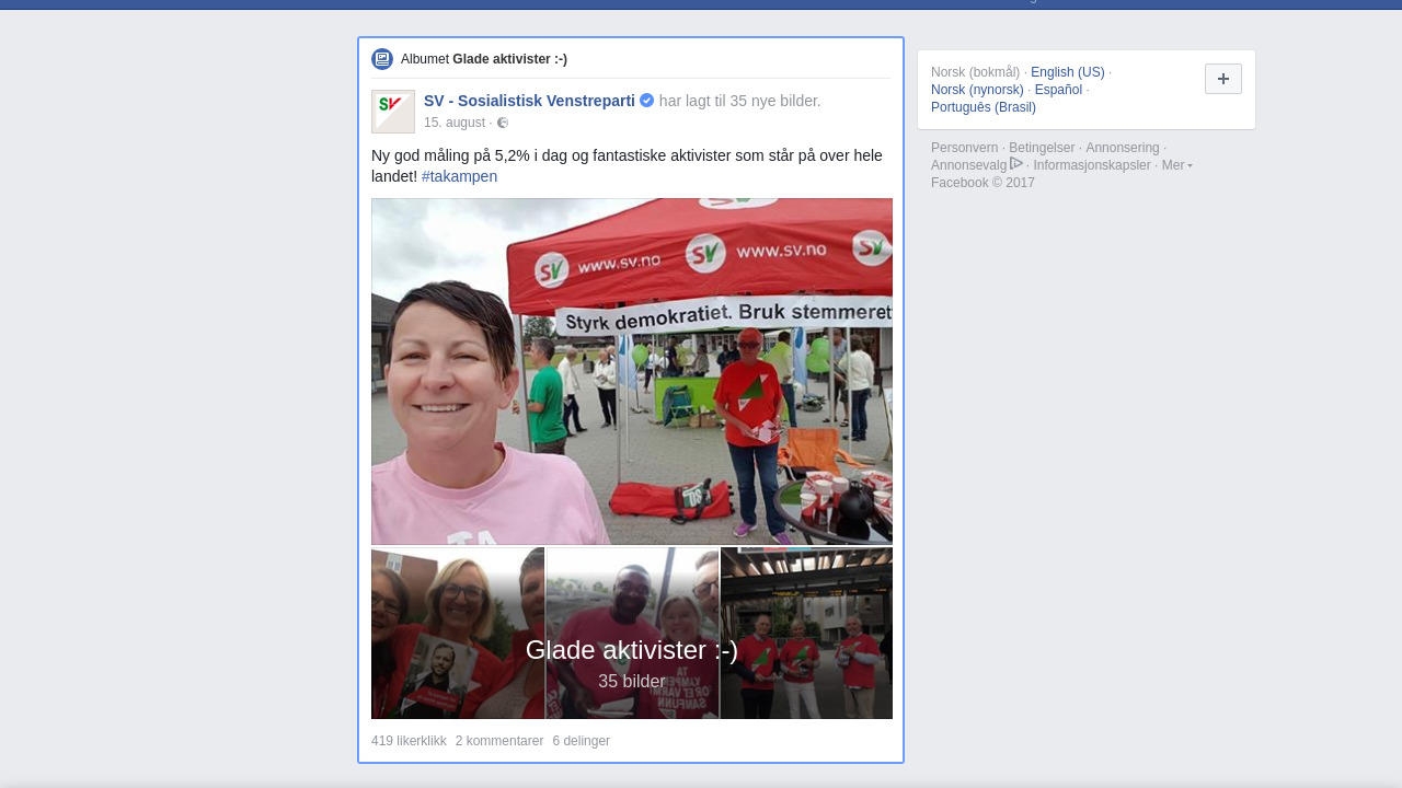 Ny god måling på 5,2% i dag og fantastiske aktivister som står på over hele landet! #takampen