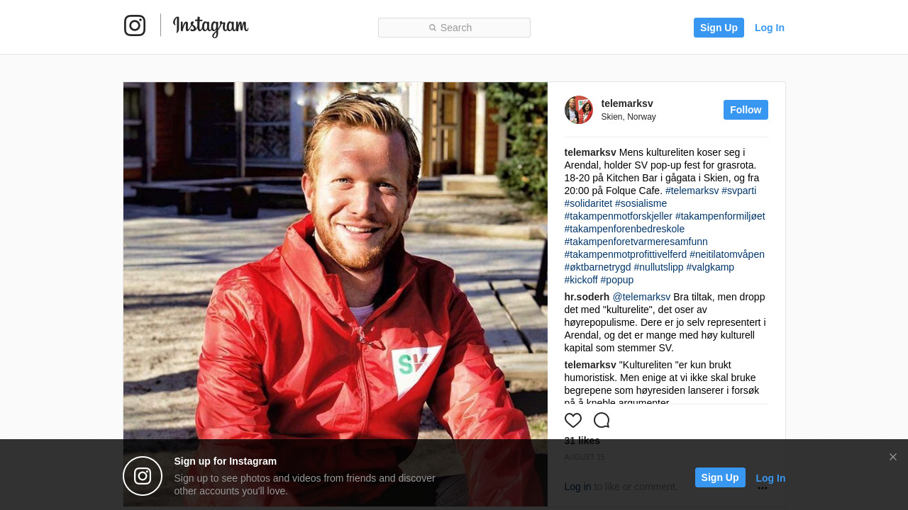Mens kultureliten koser seg i Arendal, holder SV pop-up fest for grasrota. 18-20 på Kitchen Bar i gågata i Skien, og fra 20:00 på Folque Cafe. #telemarksv #svparti #solidaritet #sosialisme #takampenmotforskjeller #takampenformiljøet #takampenforenbedreskole #takampenforetvarmeresamfunn #takampenmotprofittivelferd #neitilatomvåpen #øktbarnetrygd #nullutslipp #valgkamp #kickoff #popup
