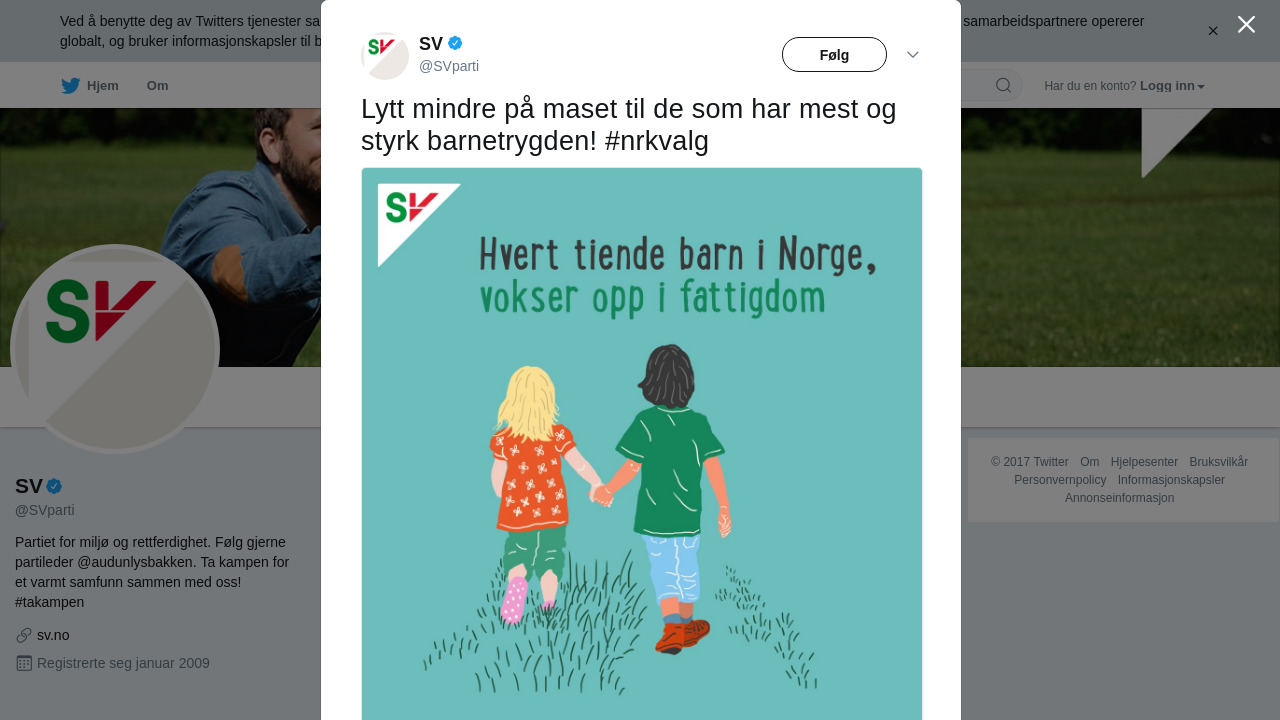 RT @SVparti: Lytt mindre på maset til de som har mest og styrk barnetrygden! #nrkvalg https://t.co/mOYkN4mBvA