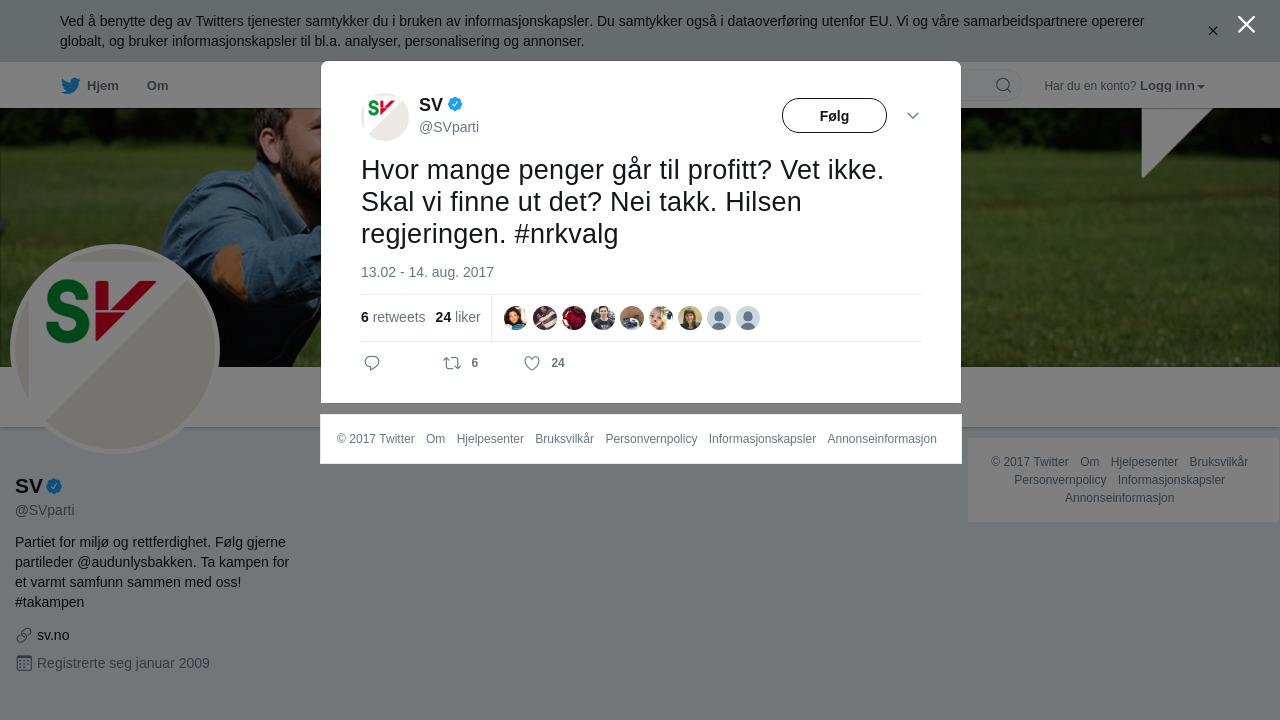RT @SVparti: Hvor mange penger går til profitt? Vet ikke. Skal vi finne ut det? Nei takk. Hilsen regjeringen. #nrkvalg