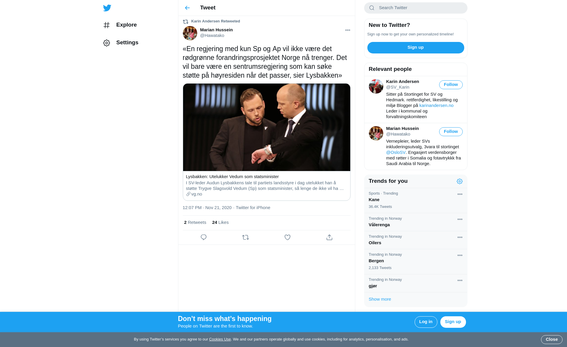 RT @Hawatako: «En regjering med kun Sp og Ap vil ikke være det rødgrønne forandringsprosjektet Norge nå trenger. Det vil bare være en sentrumsregjering som kan søke støtte på høyresiden når det passer, sier Lysbakken» https://t.co/4eKhueNAZb
