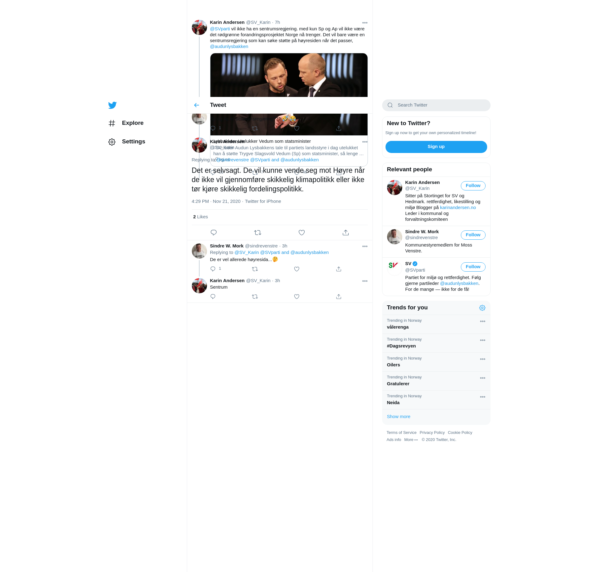 @sindrevenstre @SVparti @audunlysbakken Det er selvsagt. De vil kunne vende seg mot Høyre når de ikke vil gjennomføre skikkelig klimapolitikk eller ikke tør kjøre skikkelig fordelingspolitikk.