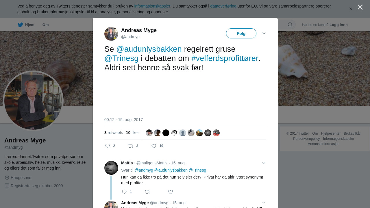 RT @andmyg: Se @audunlysbakken regelrett gruse @Trinesg i debatten om #velferdsprofittører. Aldri sett henne så svak før! https://t.co/999sbBcew2