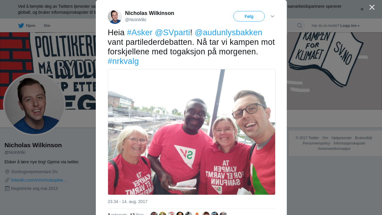 RT @NickWilki: Heia #Asker @SVparti! @audunlysbakken vant partilederdebatten. Nå tar vi kampen mot forskjellene med togaksjon på m… https://t.co/WDrRZm9w1A