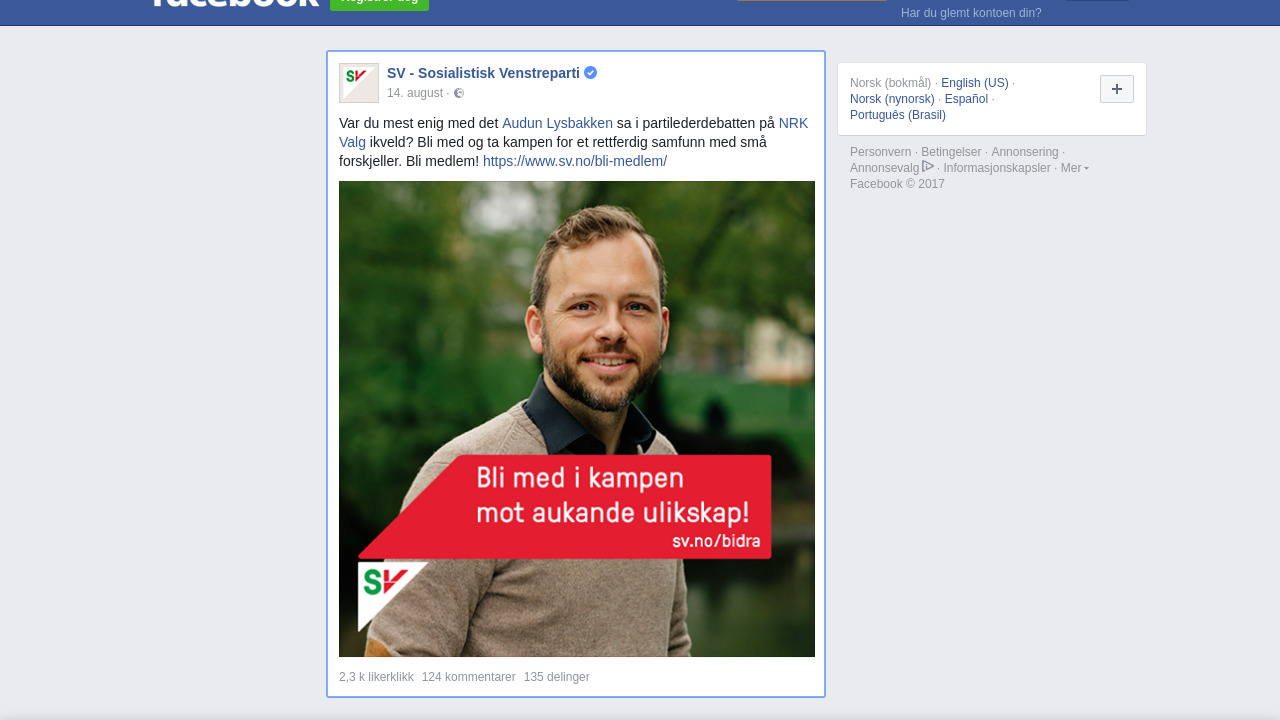 Var du mest enig med det Audun Lysbakken sa i partilederdebatten på NRK Valg ikveld? Bli med og ta kampen for et rettferdig samfunn med små forskjeller. Bli medlem! https://www.sv.no/bli-medlem/