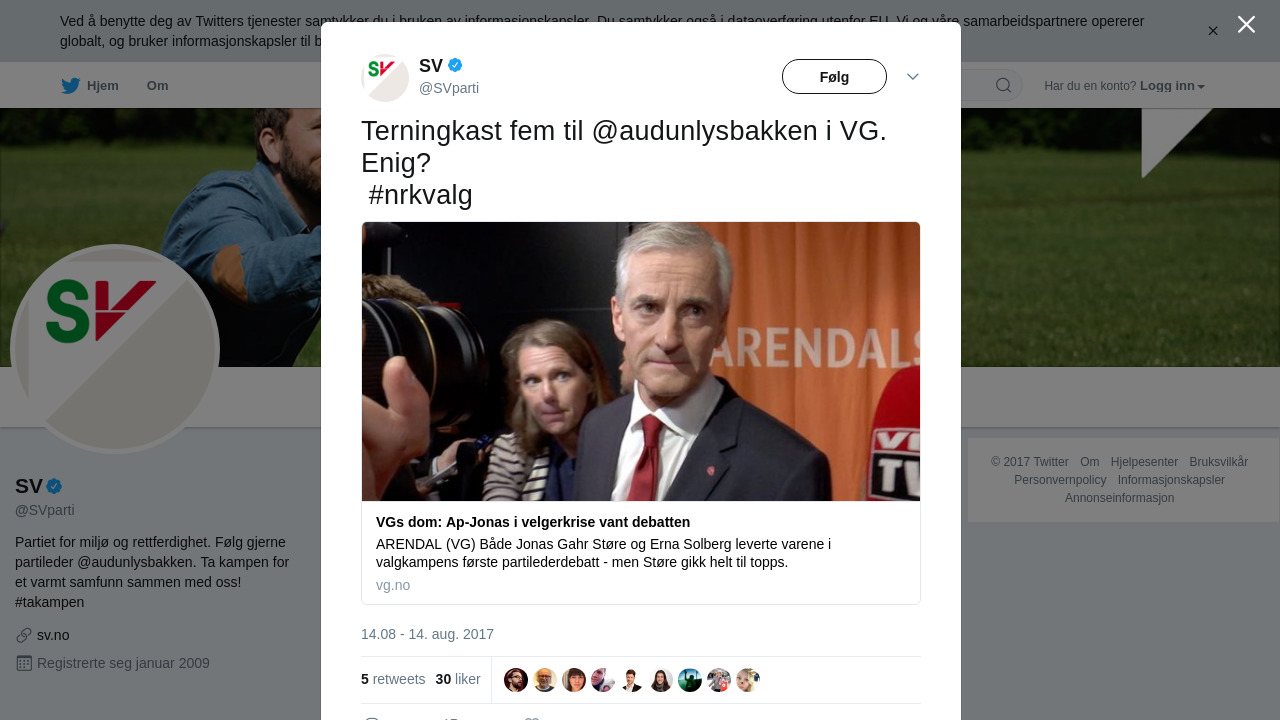 Terningkast fem til @audunlysbakken i VG. Enig? #nrkvalg https://t.co/JvAVQQQhon