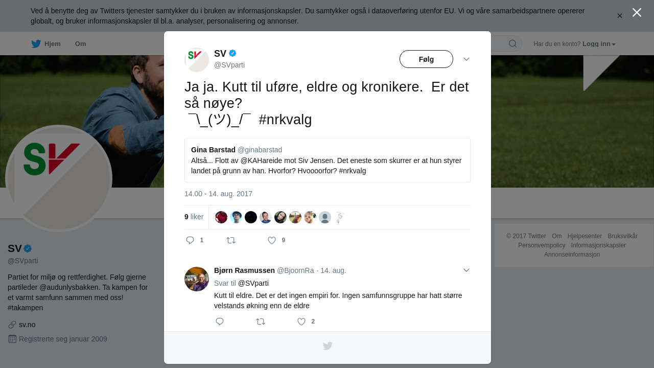 Ja ja. Kutt til uføre, eldre og kronikere. Er det så nøye? ¯\_(ツ)_/¯ #nrkvalg https://t.co/2qaLTh1Wbu