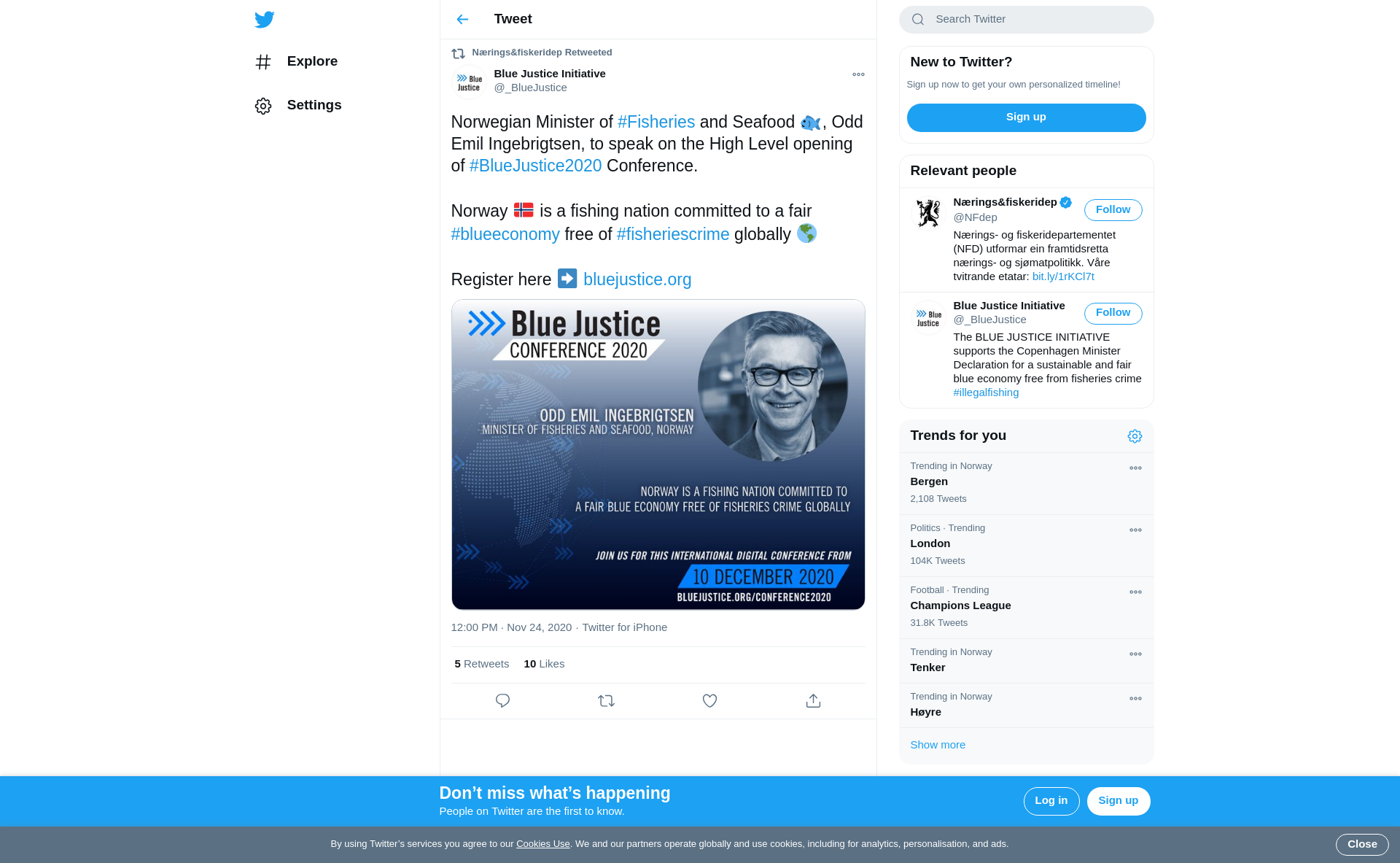 RT @_BlueJustice: Norwegian Minister of #Fisheries and Seafood 🐟, Odd Emil Ingebrigtsen, to speak on the High Level opening of #BlueJustice2020 Conference.