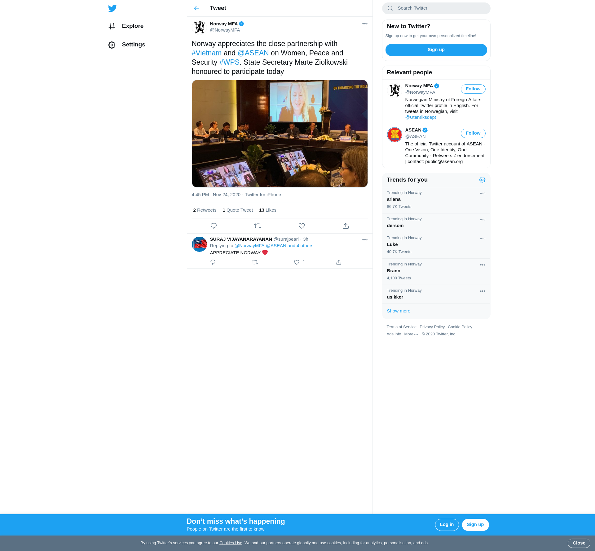 Norway appreciates the close partnership with #Vietnam and @ASEAN on Women, Peace and Security #WPS. State Secretary Marte Ziolkowski honoured to participate today https://t.co/tuHe7yoEoT