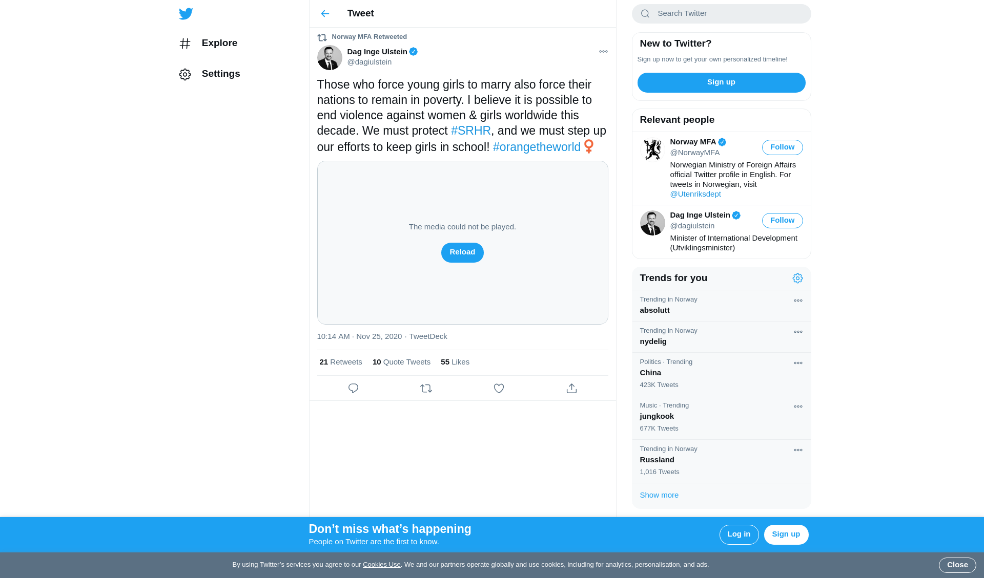 RT @dagiulstein: Those who force young girls to marry also force their nations to remain in poverty. I believe it is possible to end violence against women & girls worldwide this decade. We must protect #SRHR, and we must step up our efforts to keep girls in school! #orangetheworld https://t.co/DDsIhGKFab