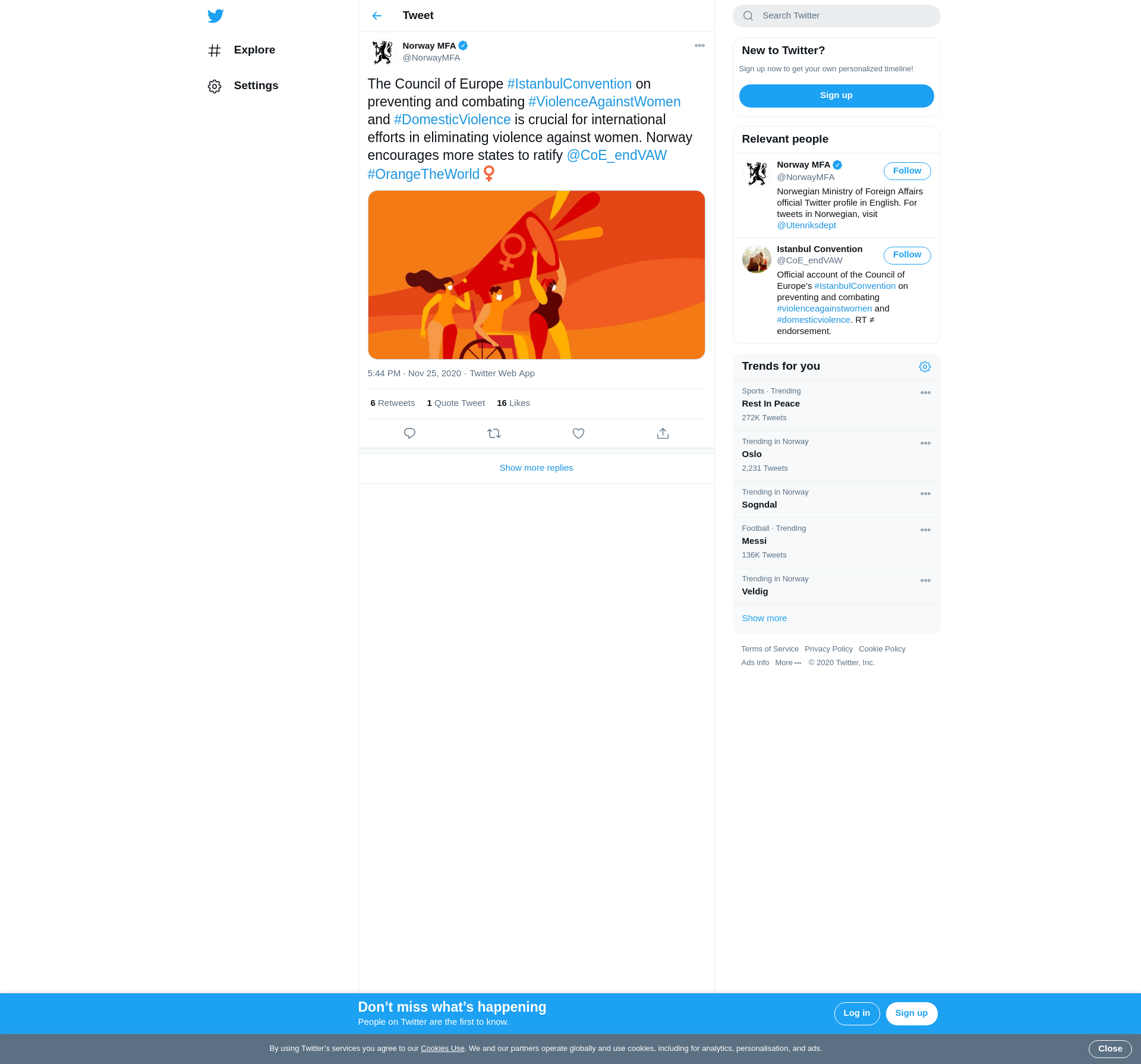 The Council of Europe #IstanbulConvention on preventing and combating #ViolenceAgainstWomen and #DomesticViolence is crucial for international efforts in eliminating violence against women. Norway encourages more states to ratify @CoE_endVAW #OrangeTheWorld https://t.co/x6ThKxWxAm