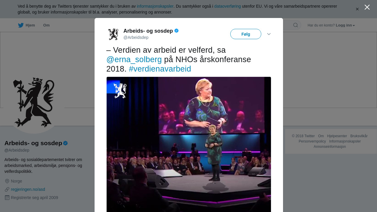 RT @Arbeidsdep: – Verdien av arbeid er velferd, sa @erna_solberg på NHOs årskonferanse 2018. #verdienavarbeid https://t.co/6gYLNlhrrt