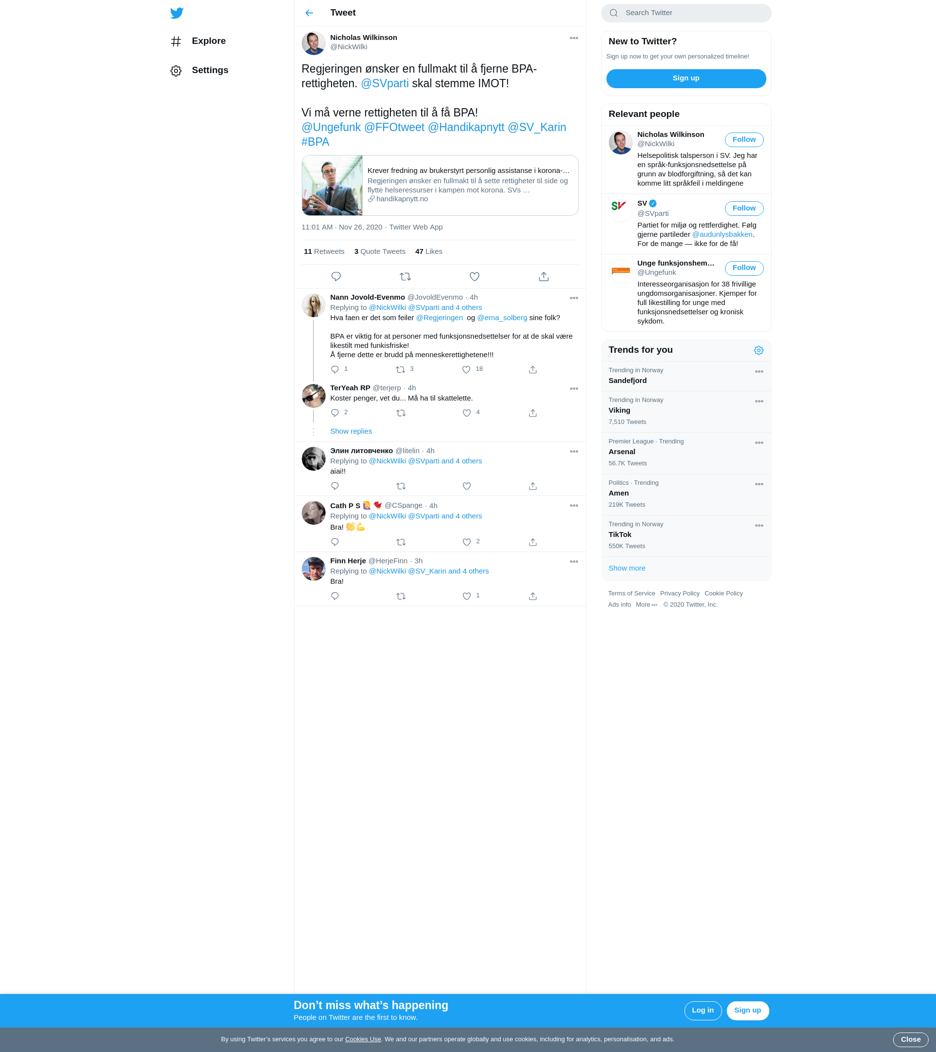 Regjeringen ønsker en fullmakt til å sette rettigheter til side og flytte helseressurser i kampen mot korona. SVs stortingsrepresentant Nicholas Wilkinson ber om at brukerstyrt personlig assistanse (BPA) ikke blir berørt.