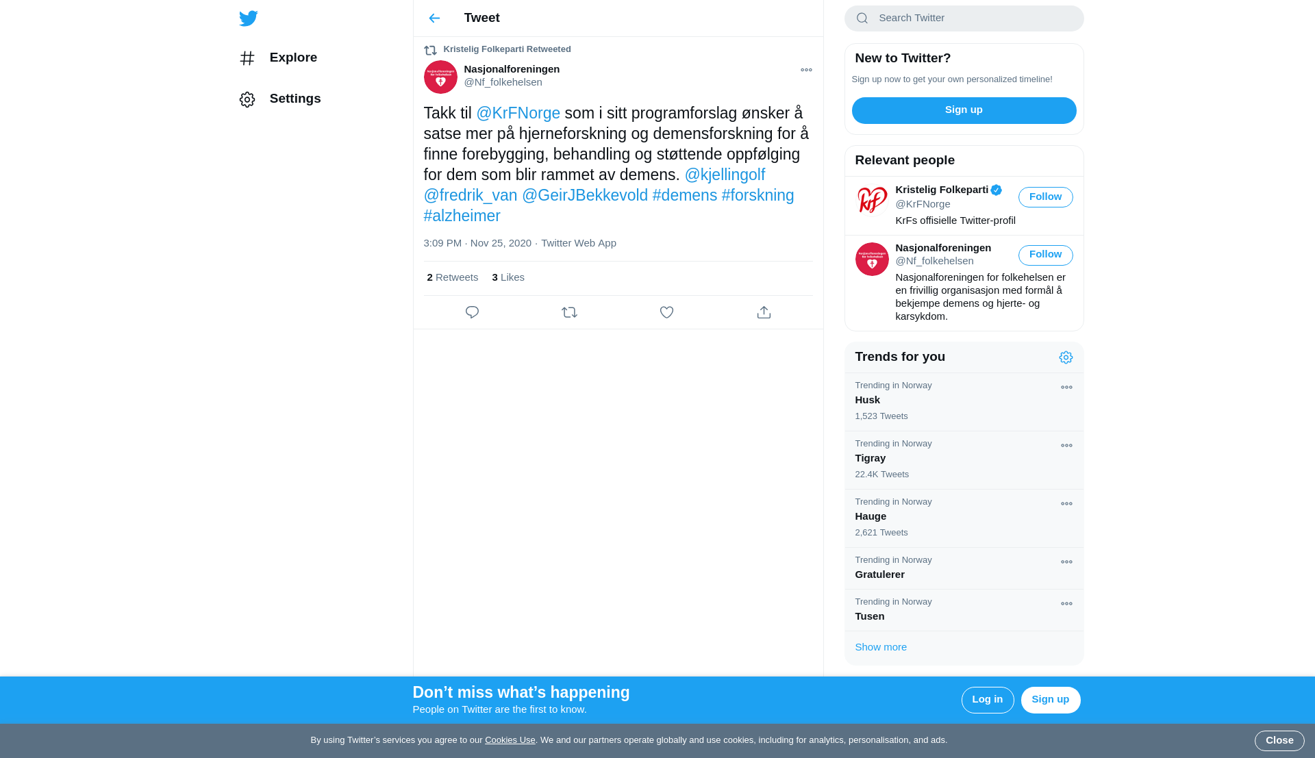 RT @Nf_folkehelsen: Takk til @KrFNorge som i sitt programforslag ønsker å satse mer på hjerneforskning og demensforskning for å finne forebygging, behandling og støttende oppfølging for dem som blir rammet av demens. @kjellingolf @fredrik_van @GeirJBekkevold #demens #forskning #alzheimer