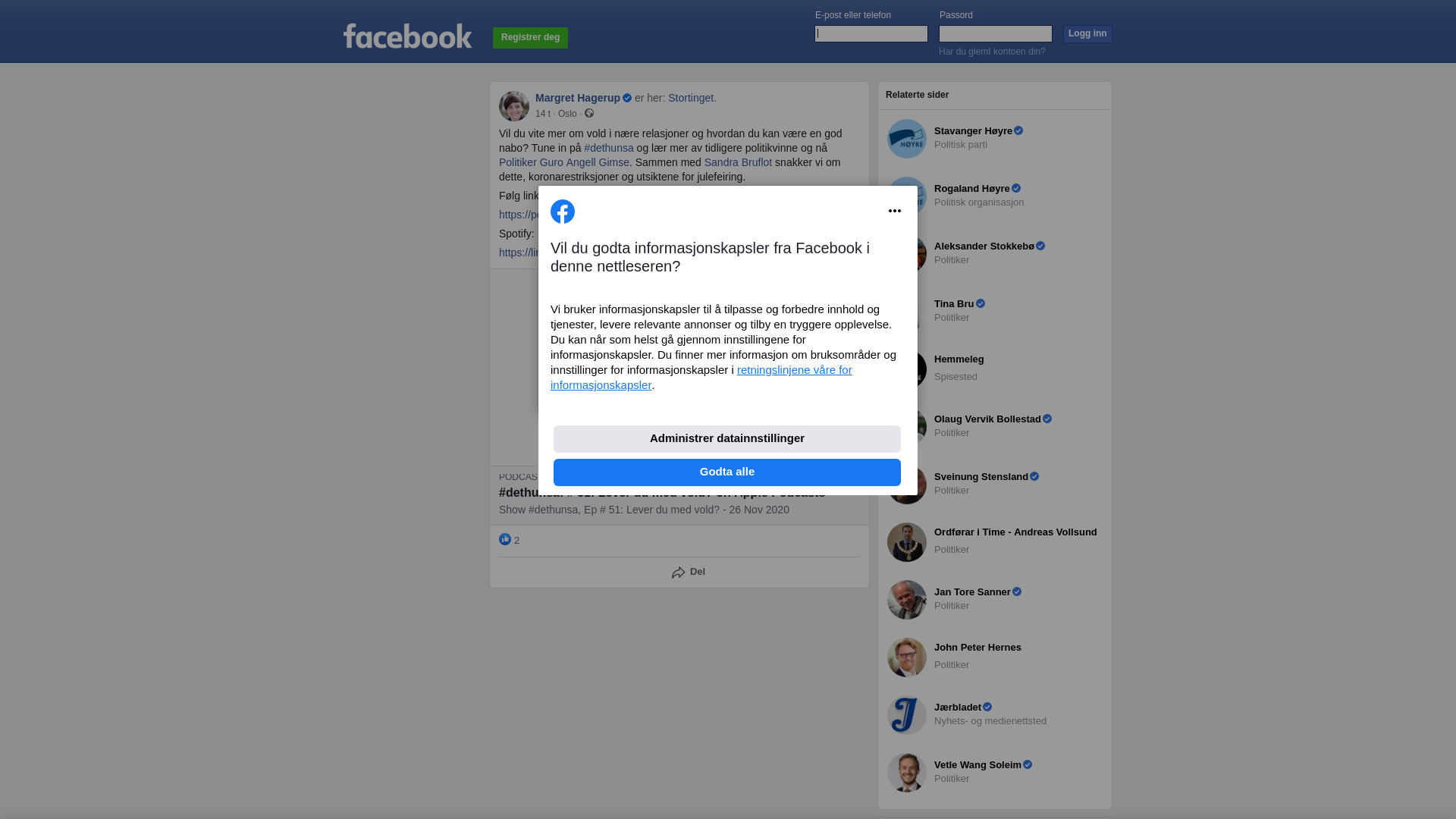 Vil du vite mer om vold i nære relasjoner og hvordan du kan være en god nabo? Tune in på #dethunsa og lær mer av tidligere politikvinne og nå Politiker Guro Angell Gimse. Sammen med Sandra Bruflot snakker vi om dette, koronarestriksjoner og utsiktene for julefeiring.
