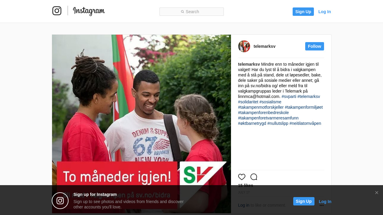 Mindre enn to måneder igjen til valget! Har du lyst til å bidra i valgkampen med å stå på stand, dele ut løpesedler, bake, dele saker på sosiale medier eller annet; gå inn på sv.no/bidra og/ eller meld fra til valgkampgruppas leder i Telemark på linnmca@hotmail.com.  #svparti #telemarksv #solidaritet #sosialisme #takampenmotforskjeller #takampenformiljøet #takampenforenbedreskole #takampenforetvarmeresamfunn #øktbarnetrygd #nullutslipp #neitilatomvåpen