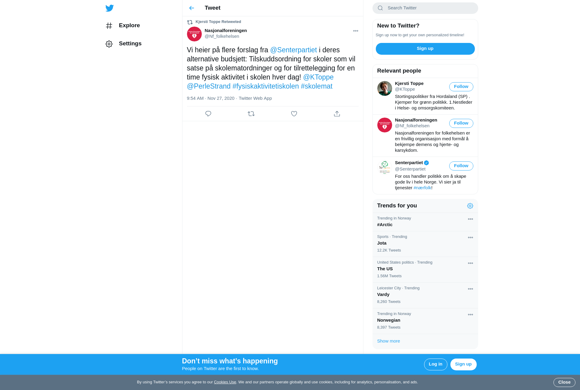 RT @Nf_folkehelsen: Vi heier på flere forslag fra @Senterpartiet i deres alternative budsjett: Tilskuddsordning for skoler som vil satse på skolematordninger og for tilrettelegging for en time fysisk aktivitet i skolen hver dag! @KToppe @PerleStrand #fysiskaktivitetiskolen #skolemat