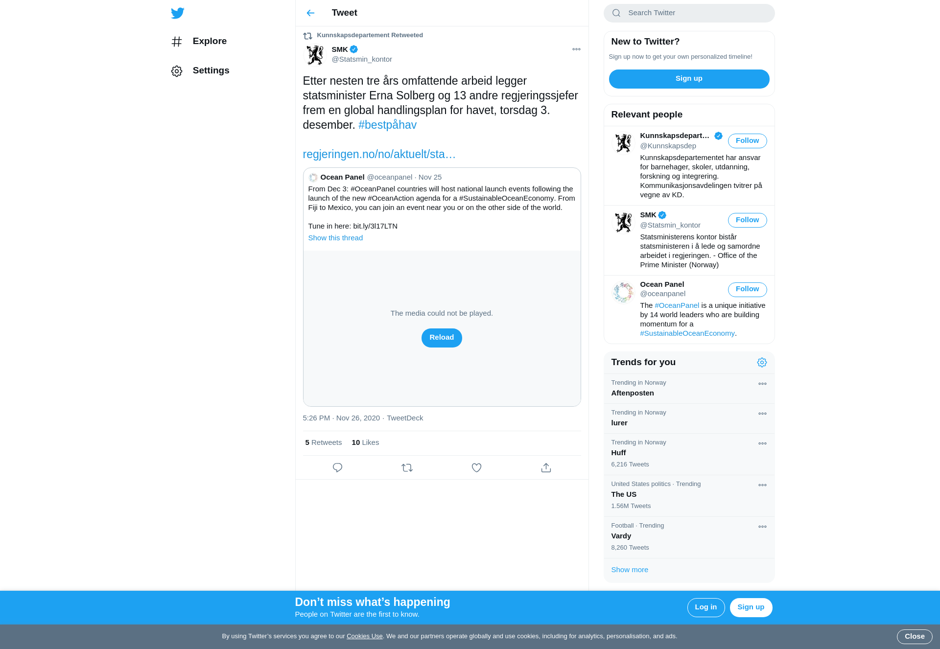 RT @Statsmin_kontor: Etter nesten tre års omfattende arbeid legger statsminister Erna Solberg og 13 andre regjeringssjefer frem en global handlingsplan for havet, torsdag 3. desember. #bestpåhav
