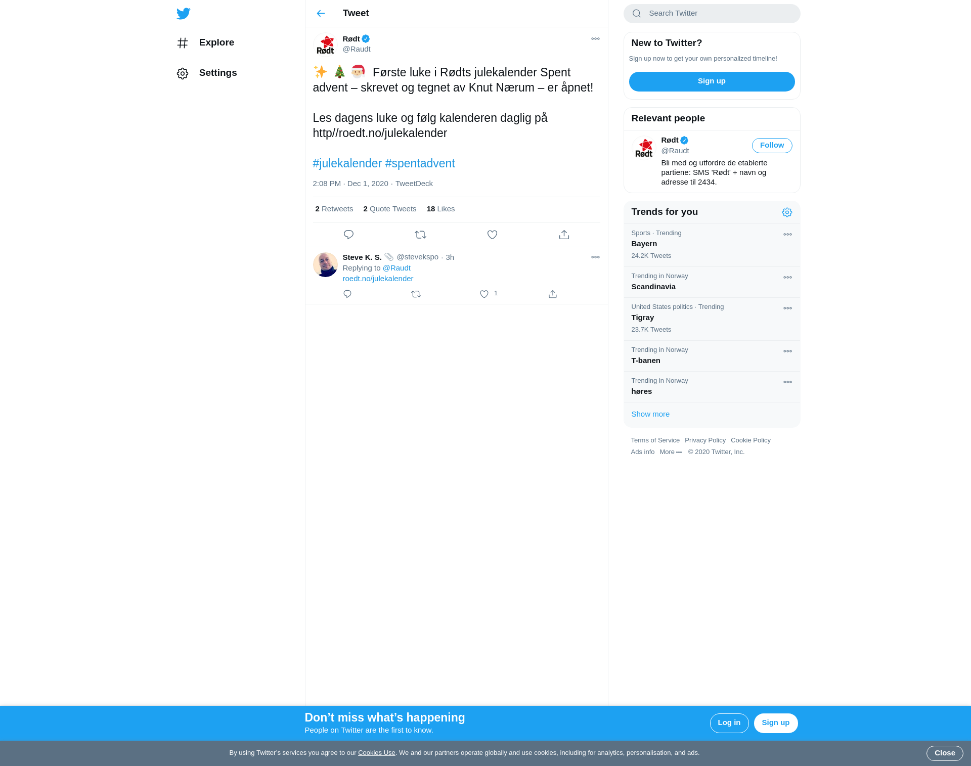 ✨ 🎄 🎅🏼 Første luke i Rødts julekalender Spent advent – skrevet og tegnet av Knut Nærum – er åpnet! Les dagens luke og følg kalenderen daglig på http//roedt.no/julekalender #julekalender #spentadvent