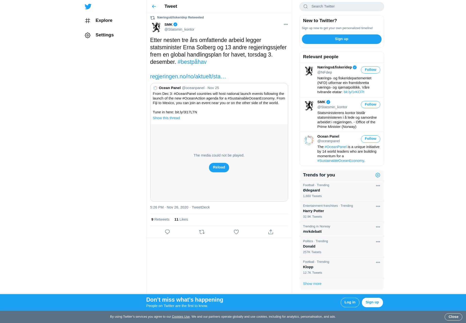 RT @Statsmin_kontor: Etter nesten tre års omfattende arbeid legger statsminister Erna Solberg og 13 andre regjeringssjefer frem en global handlingsplan for havet, torsdag 3. desember. #bestpåhav