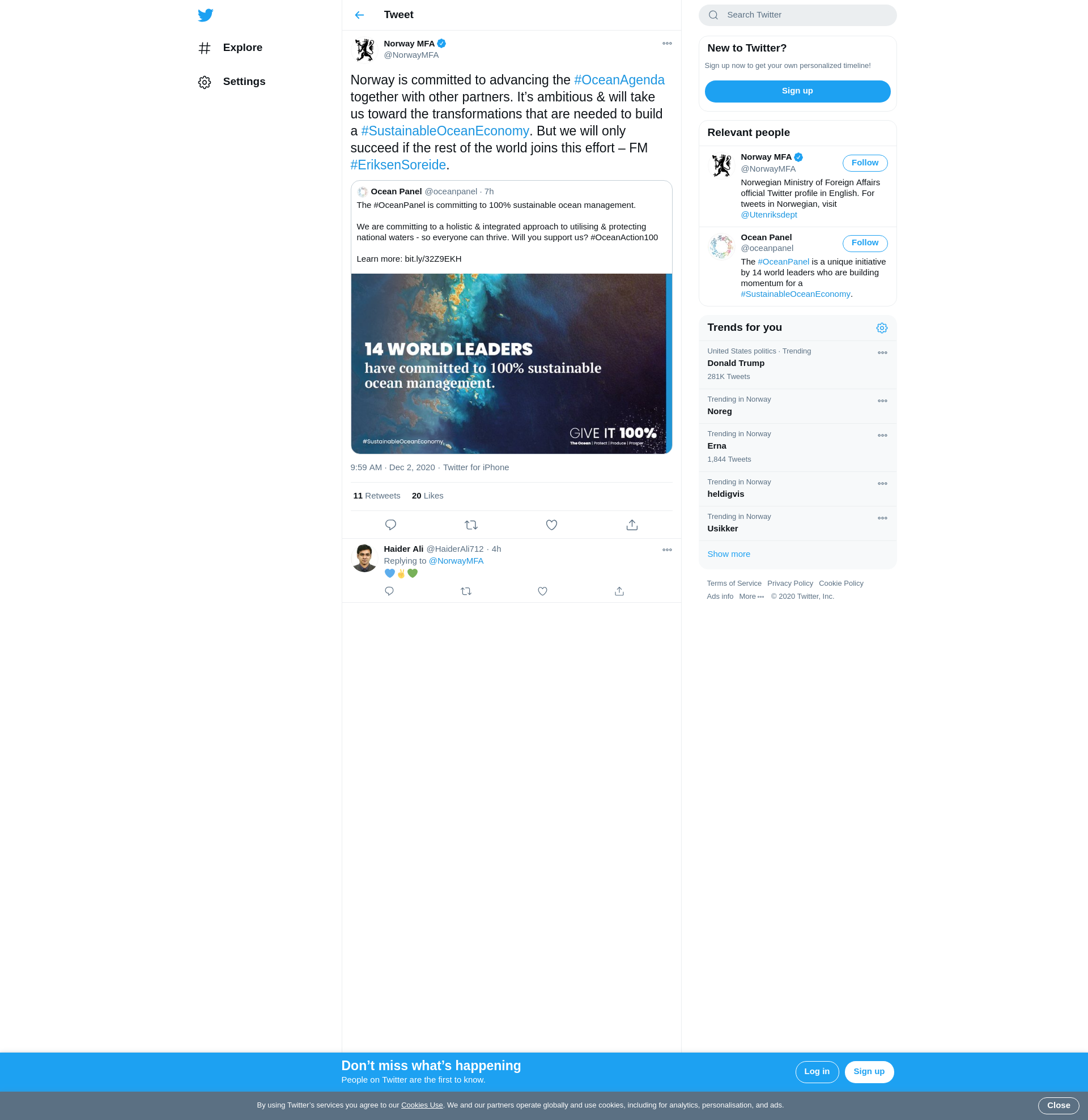 Norway is committed to advancing the #OceanAgenda together with other partners. It’s ambitious & will take us toward the transformations that are needed to build a #SustainableOceanEconomy. But we will only succeed if the rest of the world joins this effort – FM #EriksenSoreide.