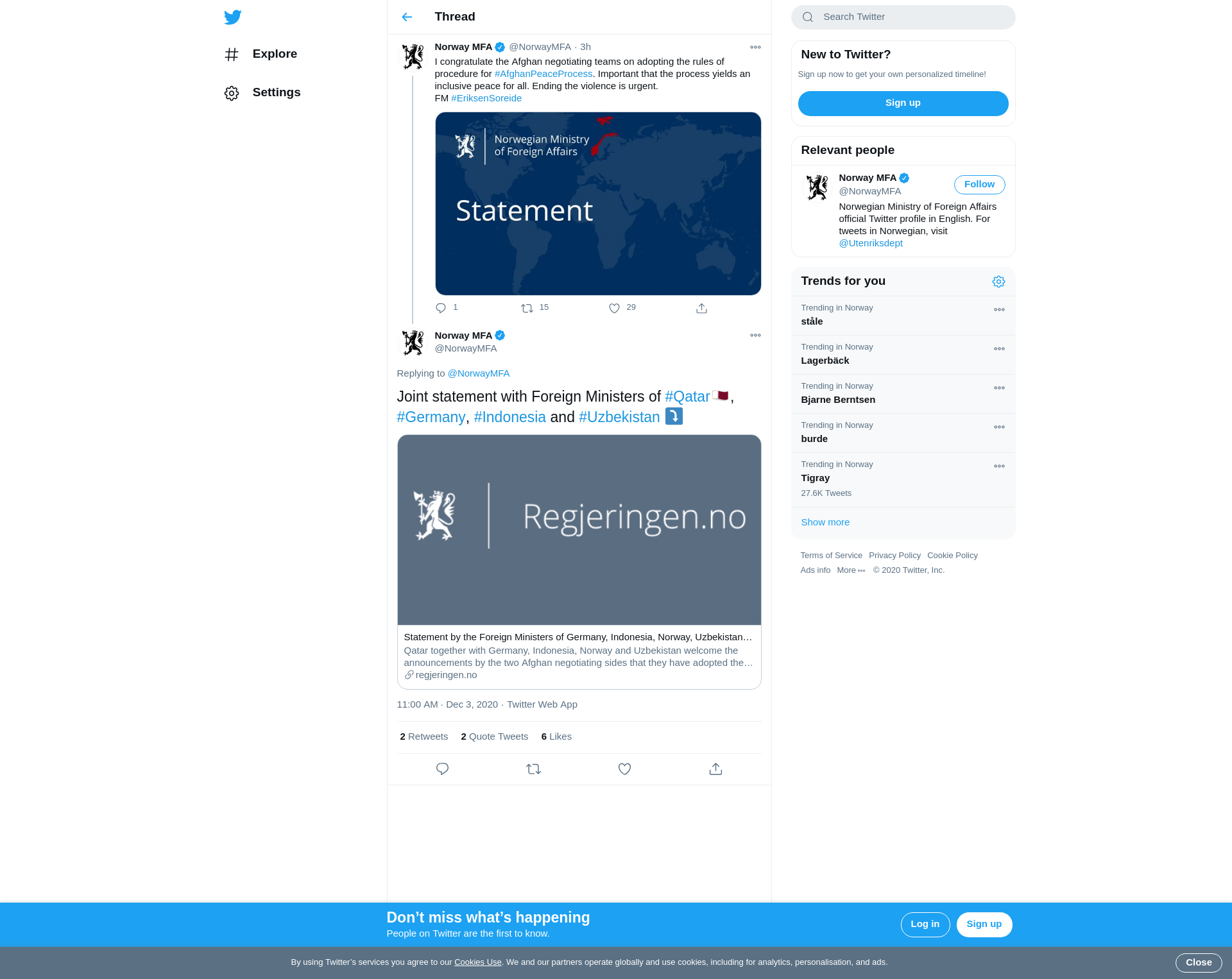 Statement by the Foreign Ministers of Germany, Indonesia, Norway, Uzbekistan, and Qatar