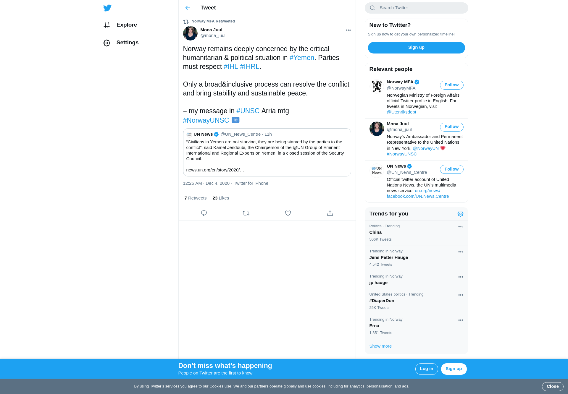 RT @mona_juul: Norway remains deeply concerned by the critical humanitarian & political situation in #Yemen. Parties must respect #IHL #IHRL.