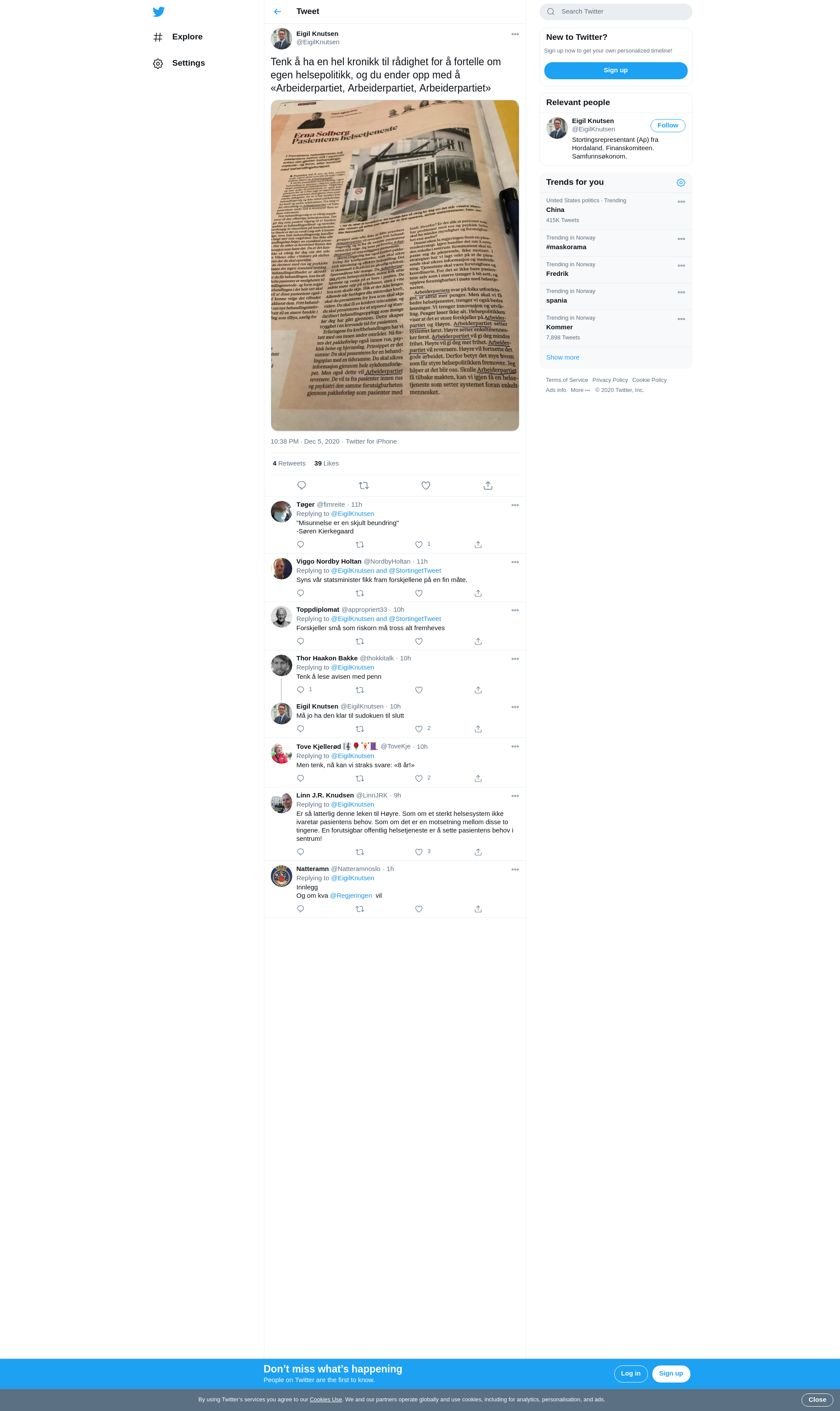 Tenk å ha en hel kronikk til rådighet for å fortelle om egen helsepolitikk, og du ender opp med å «Arbeiderpartiet, Arbeiderpartiet, Arbeiderpartiet» https://t.co/xeQhIhh4gC