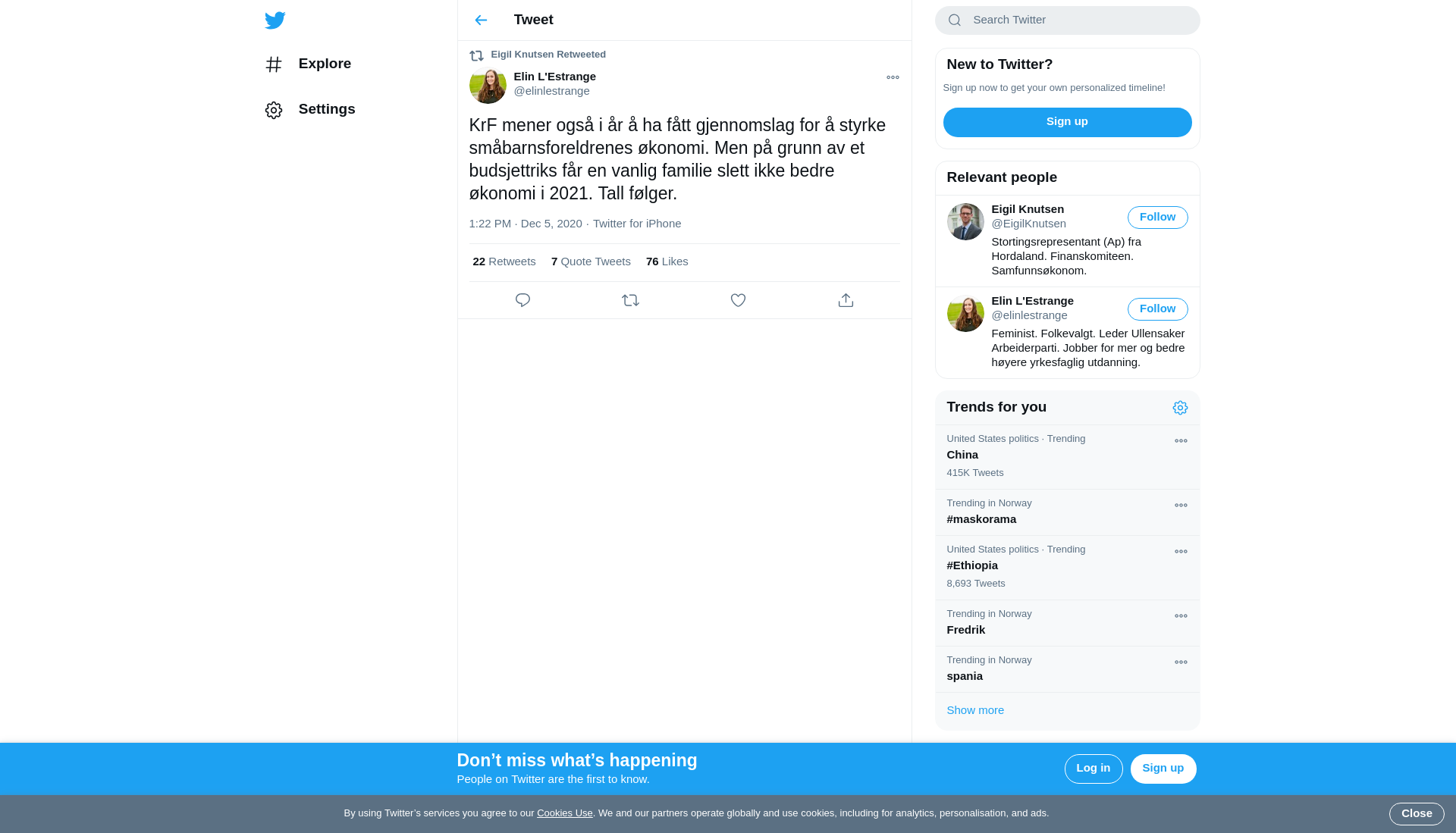 RT @elinlestrange: KrF mener også i år å ha fått gjennomslag for å styrke småbarnsforeldrenes økonomi. Men på grunn av et budsjettriks får en vanlig familie slett ikke bedre økonomi i 2021. Tall følger.