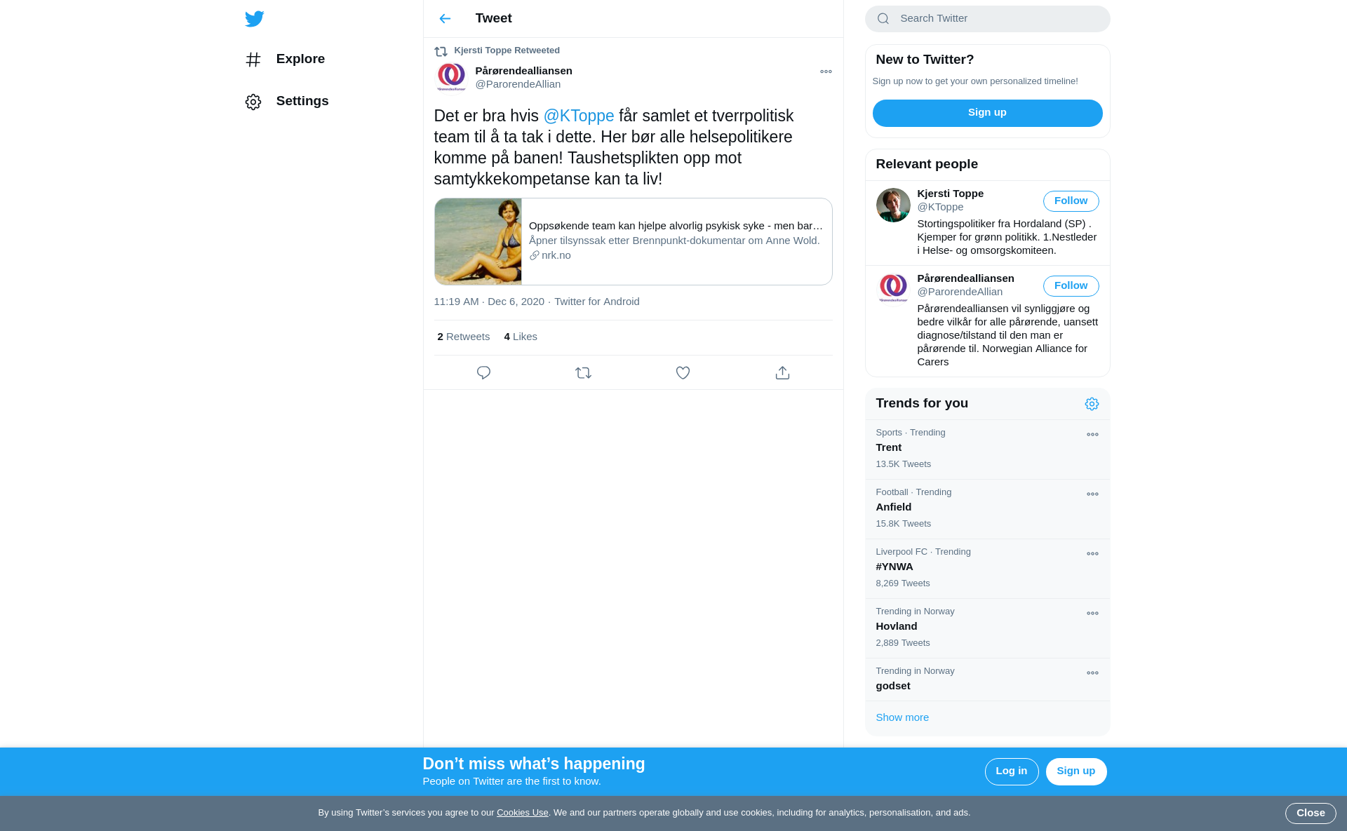 RT @ParorendeAllian: Det er bra hvis @KToppe får samlet et tverrpolitisk team til å ta tak i dette. Her bør alle helsepolitikere komme på banen! Taushetsplikten opp mot samtykkekompetanse kan ta liv! https://t.co/XZGzYGczp8