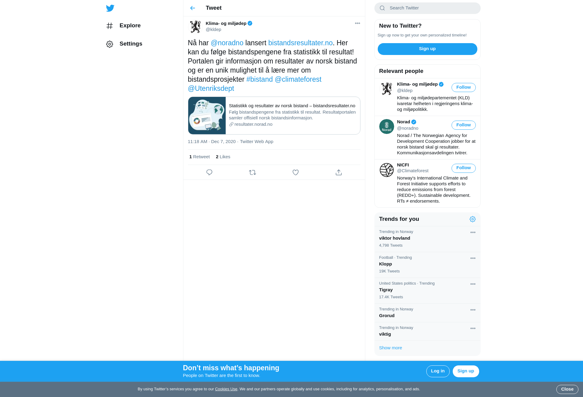 Nå har @noradno lansert https://t.co/uW1I1mKEVo. Her kan du følge bistandspengene fra statistikk til resultat! Portalen gir informasjon om resultater av norsk bistand og er en unik mulighet til å lære mer om bistandsprosjekter #bistand @climateforest @Utenriksdept