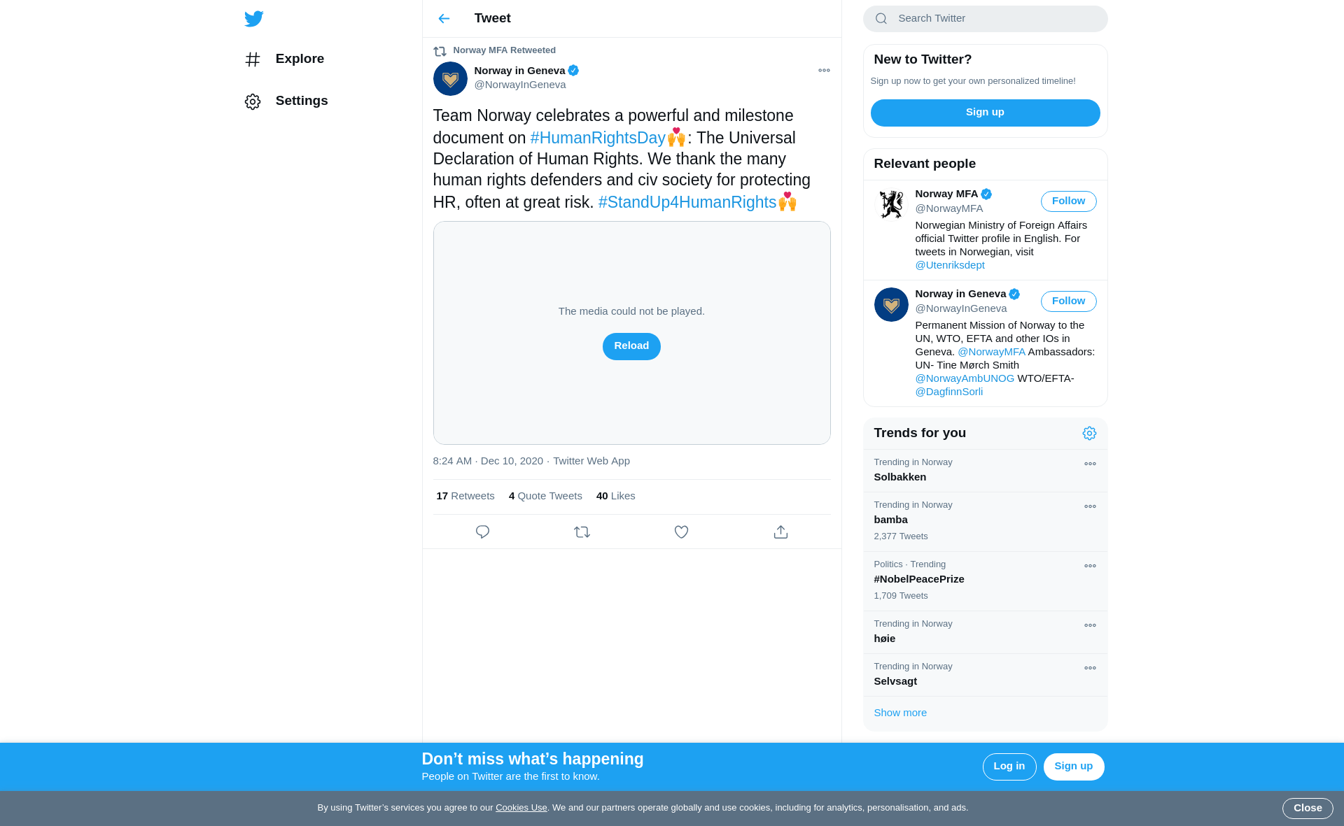 RT @NorwayInGeneva: Team Norway celebrates a powerful and milestone document on #HumanRightsDay: The Universal Declaration of Human Rights. We thank the many human rights defenders and civ society for protecting HR, often at great risk. #StandUp4HumanRights https://t.co/1BDaocCFZ7